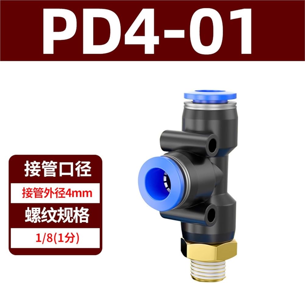 PD External Thread Copper Tee PB Pneumatic Quick Insert 8-02 Tracheal Connector 12-04/6-01 1Pcs