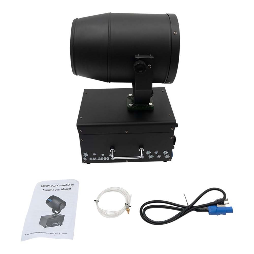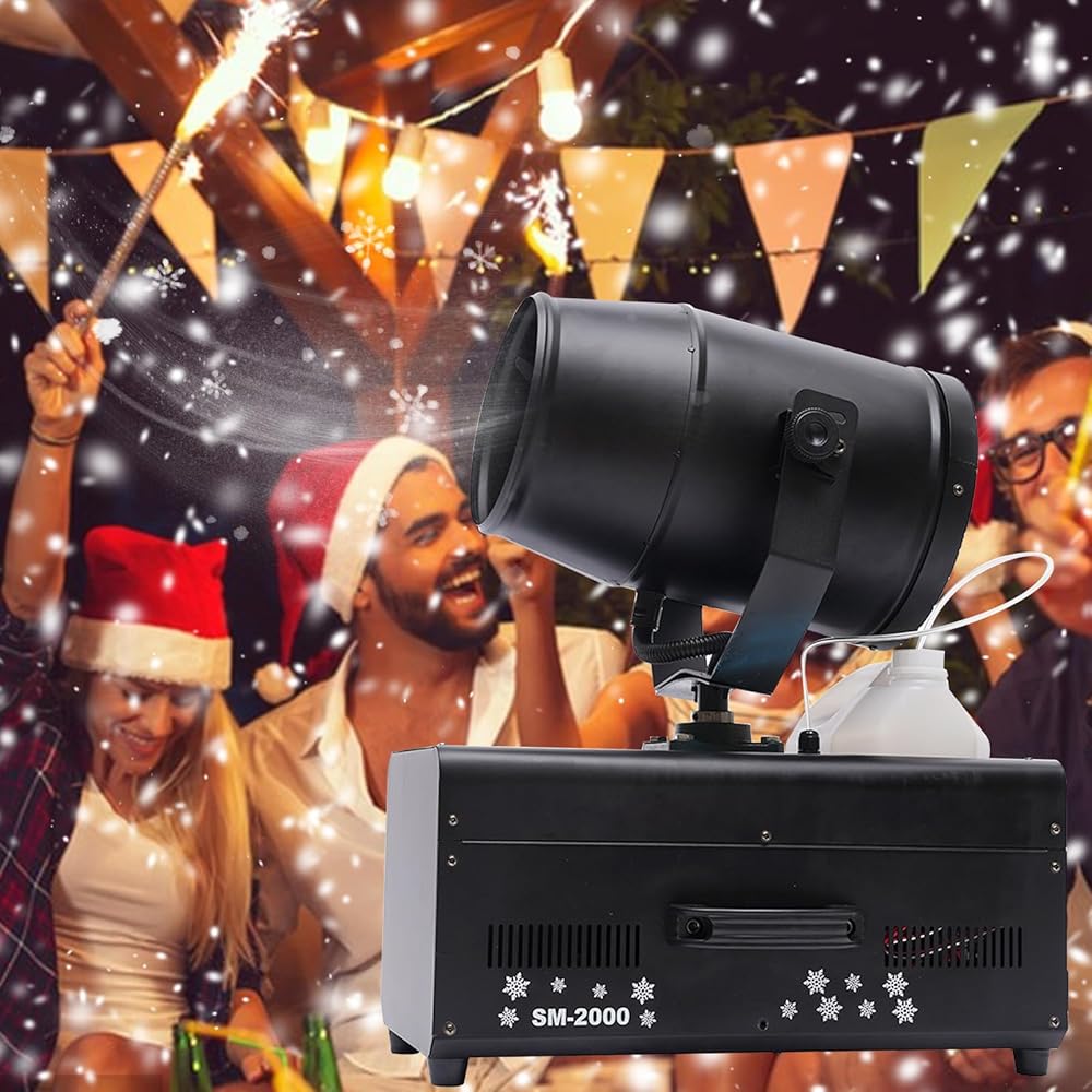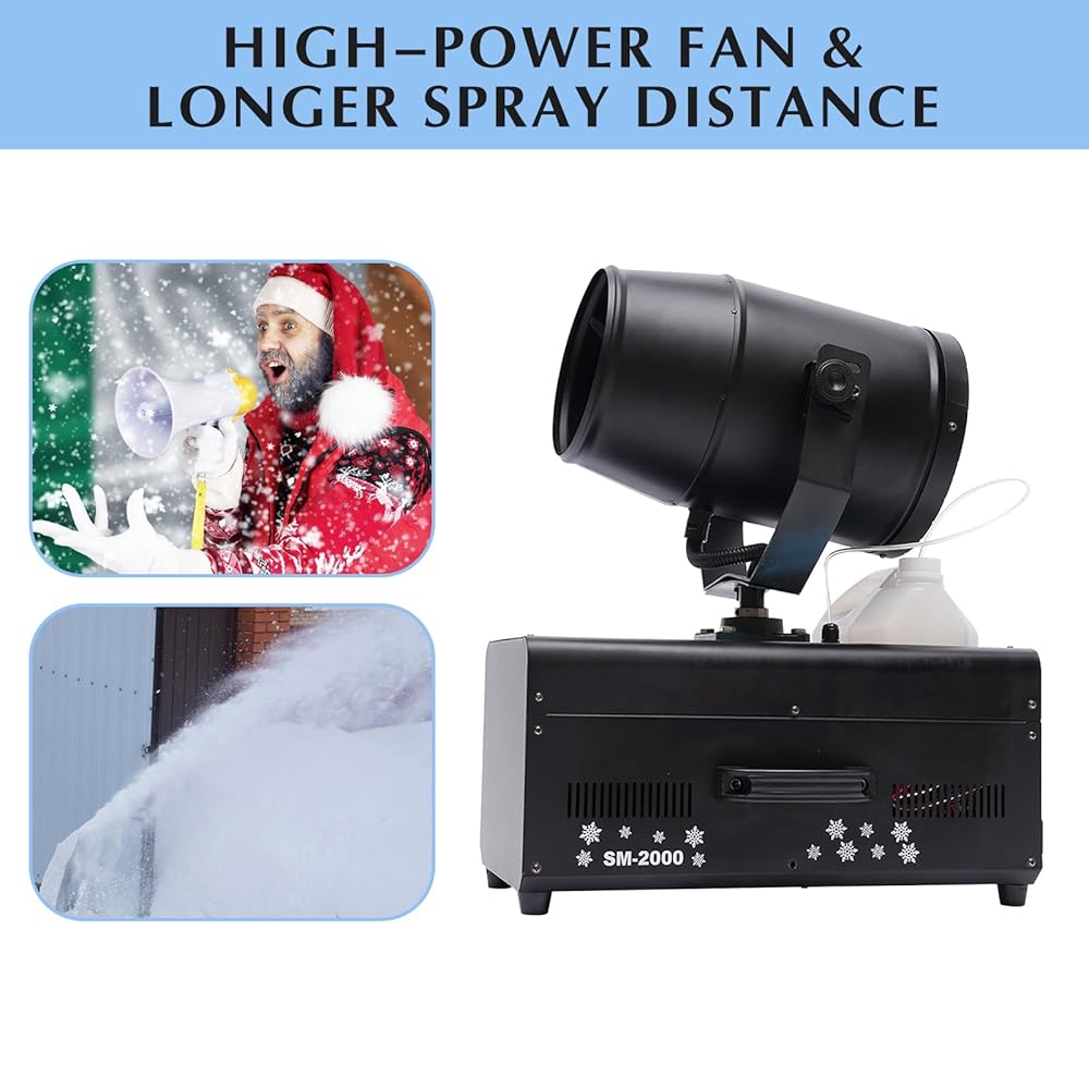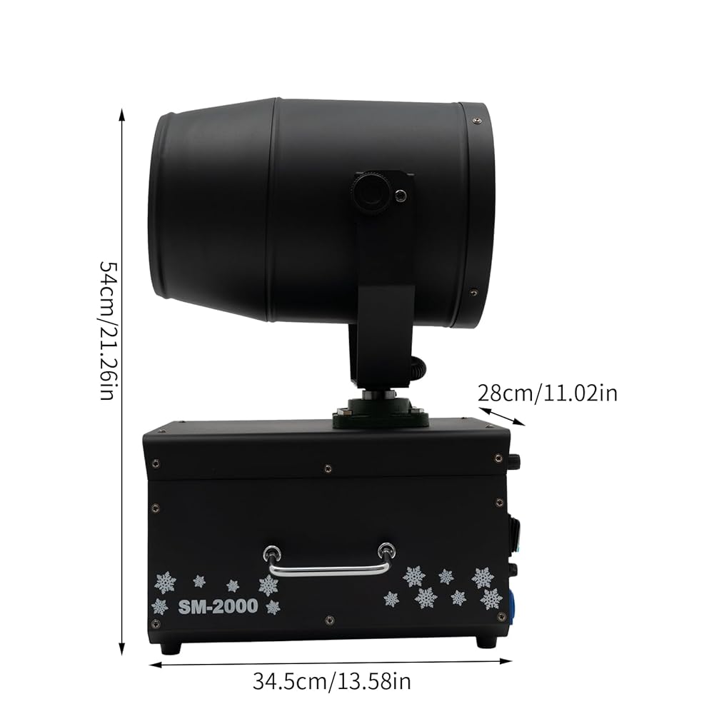 آلة الثلج، جهاز تحكم عن بعد يدوي 2000 واط، آلة رش ندفة الثلج، جهاز نفخ الثلج الزائف، مروحة قوية بزاوية كبيرة، رأس دوار، رذاذ طويل الأمد للحفلات (2000 واط 20.87 * 12.60 * 27.56 بوصة)