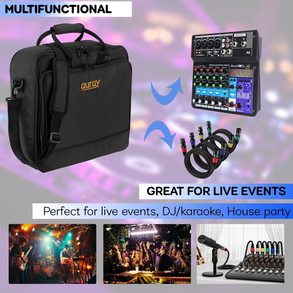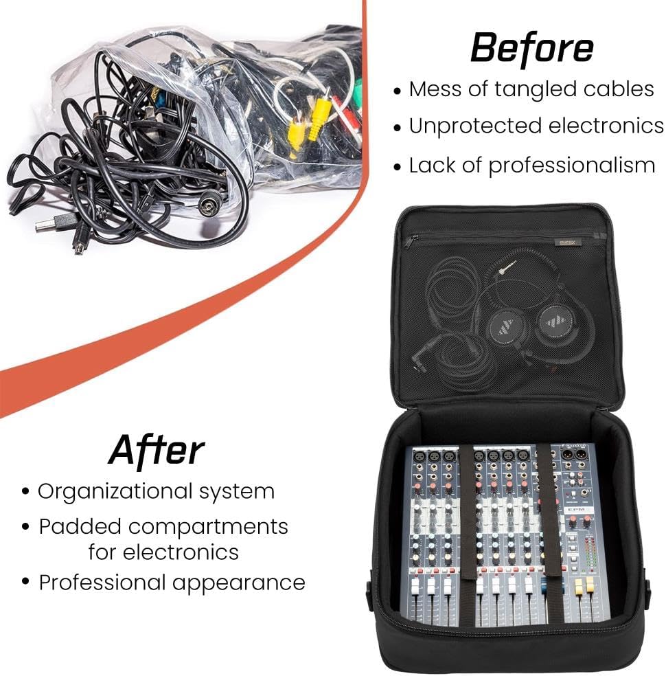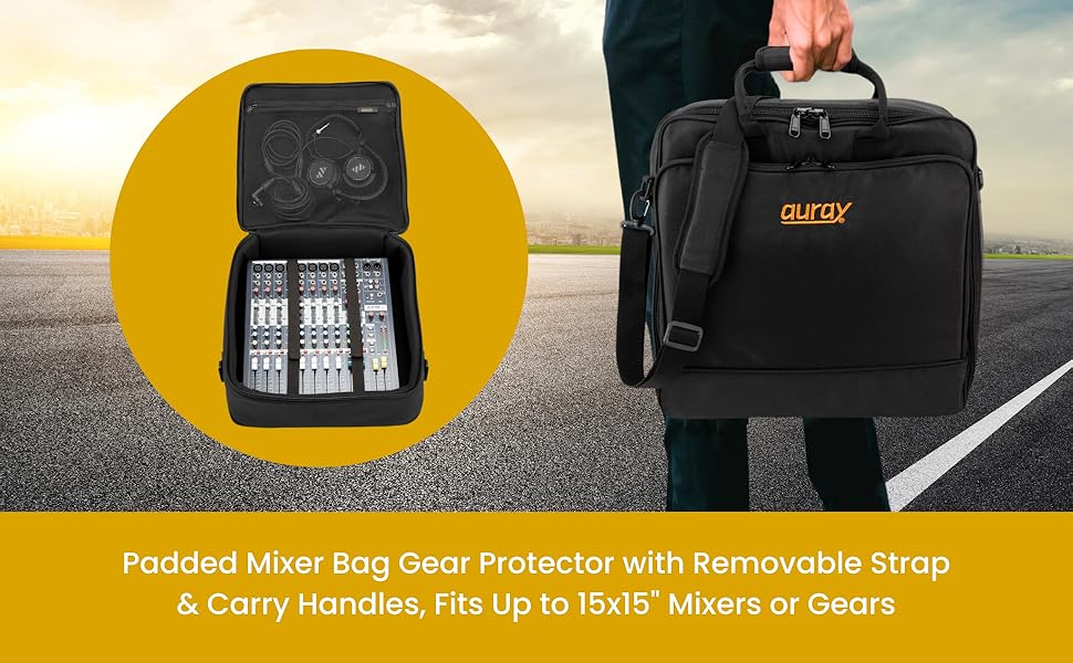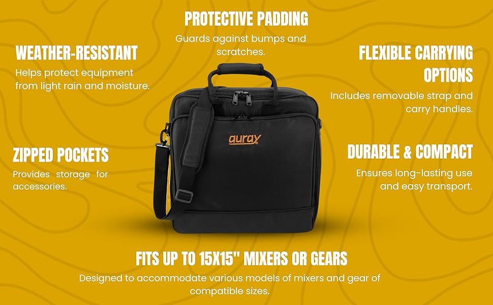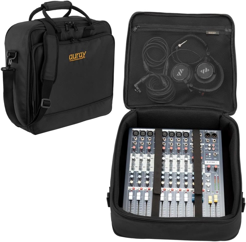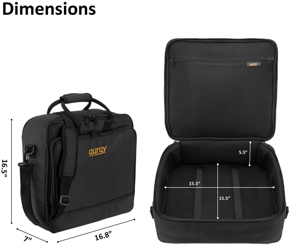 حقيبة خلاط مبطنة من النايلون من AURAY مع واقي للعتاد، وحزام قابل للإزالة ومقابض حمل - تناسب خلاطات تصل إلى 15 × 15 بوصة، ومقاومة للطقس، وجيوب مضغوطة - حقيبة تخزين مثالية للسفر ومعدات الصوت