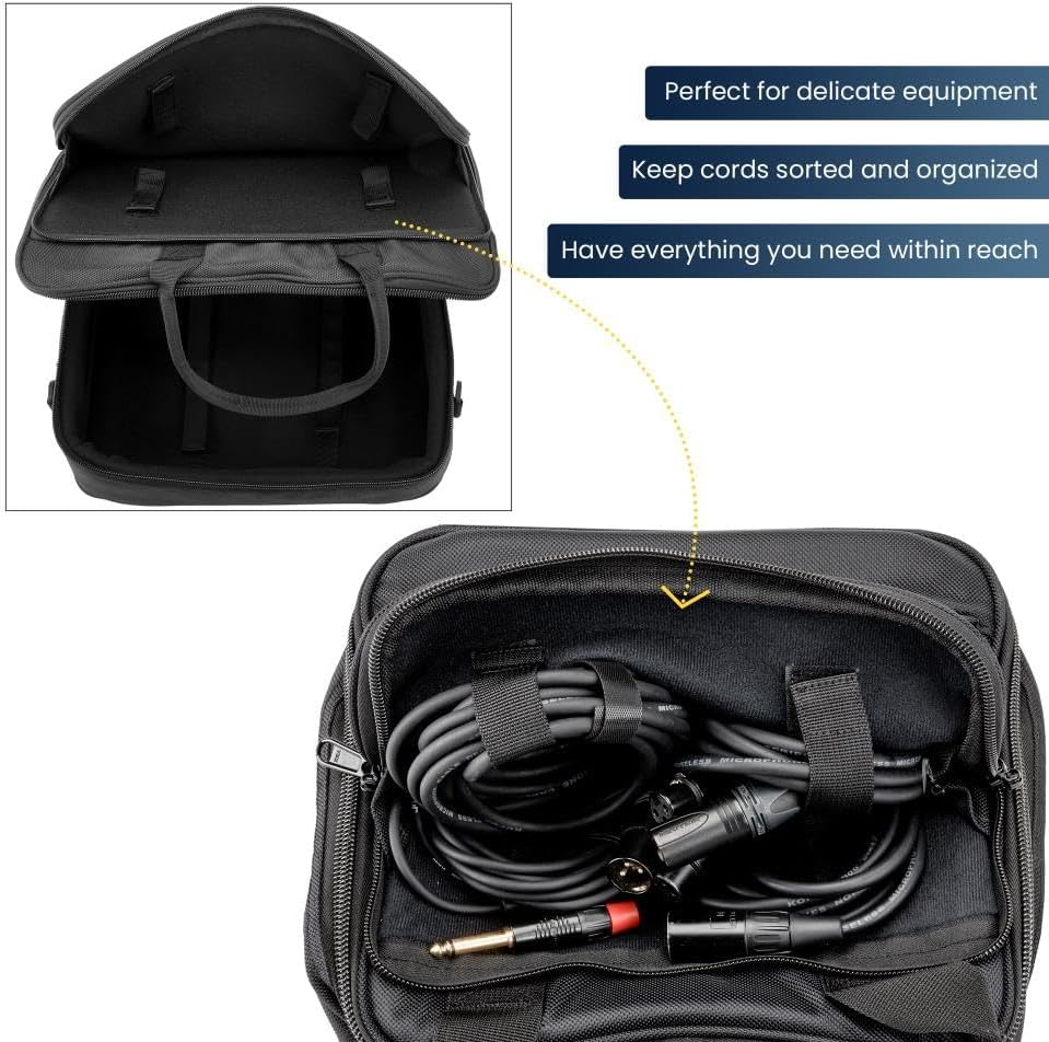 أشرطة ربط داخلية: قم بتأمين الخلاط الخاص بك باستخدام أشرطة ربط داخلية تعمل باللمس، مما يمنعه من التحرك داخل الحقيبة. كما يحمي الجزء الداخلي من التريكو الفخم معداتك من الخدوش.