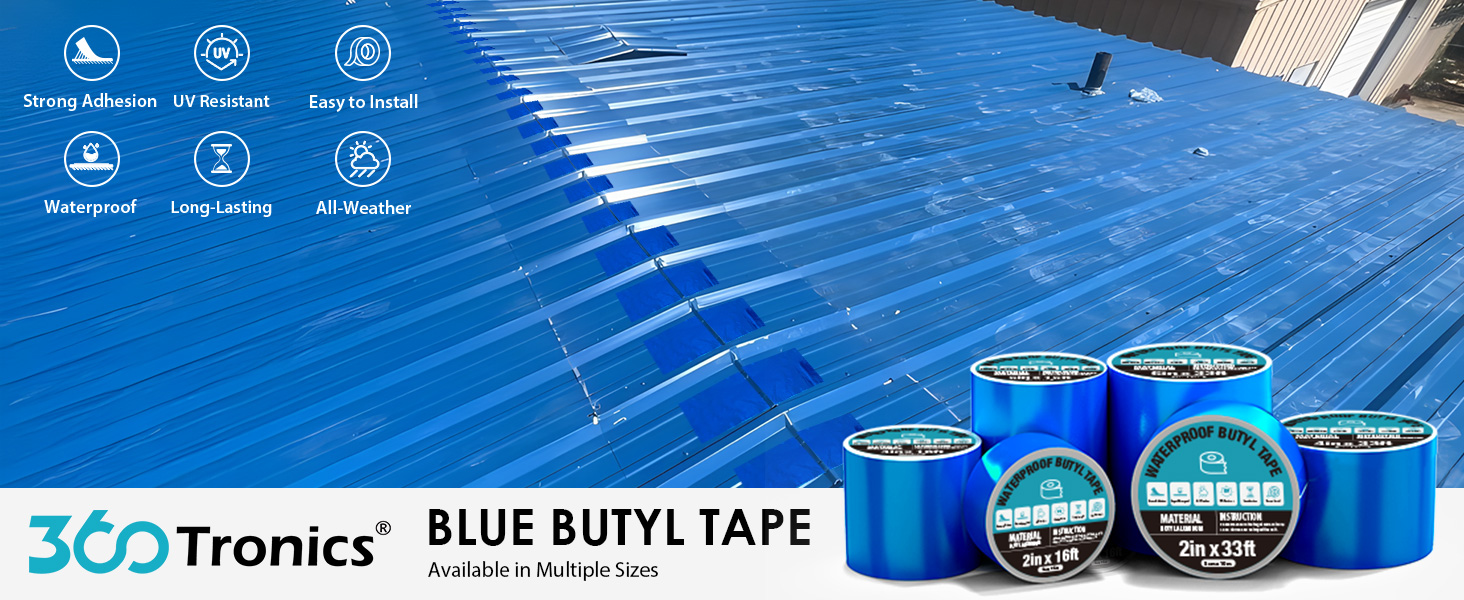 شريط بوتيل احترافي مقاوم للماء: مصنوع من مطاط البوتيل مع طبقة ألومنيوم زرقاء مقاومة للماء. سمك إضافي 1.2 ملم، عصا إضافية، التصاق إضافي. إنه يوفر مقاومة ممتازة للماء والاحتكاك والحماية من الإشعاع والعزل الحراري ومقاومة الأشعة فوق البنفسجية ودرجات الحرارة القصوى، مما يضمن رابطة قوية وطويلة الأمد لجميع احتياجات الختم الخاصة بك.