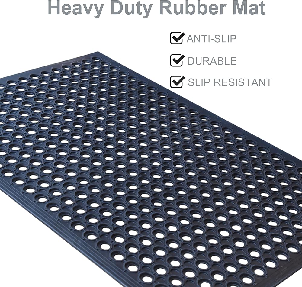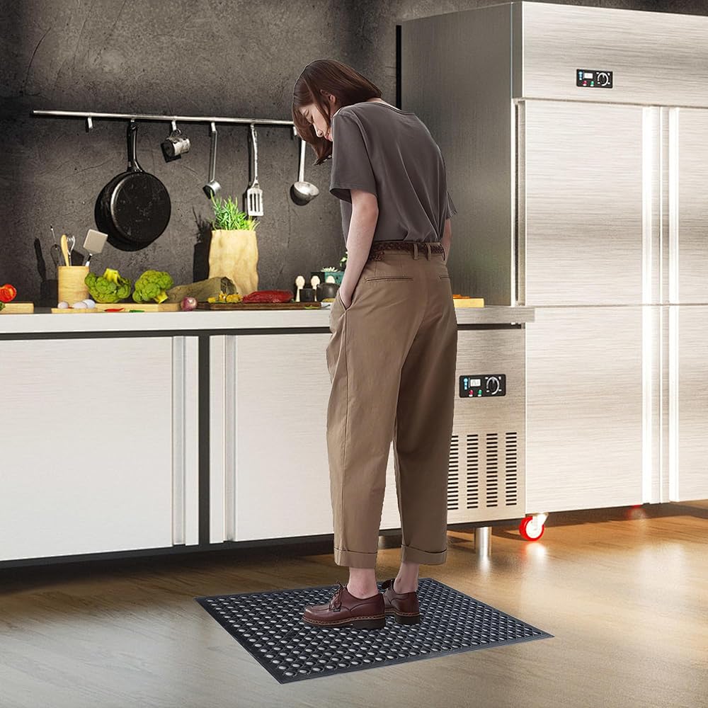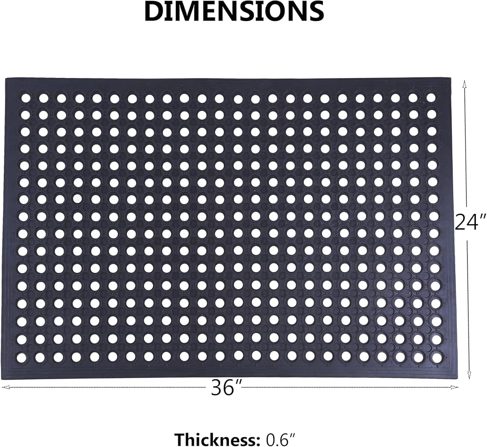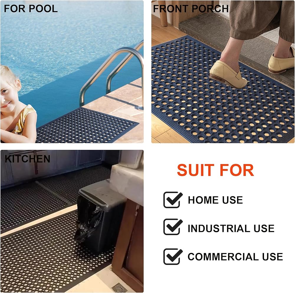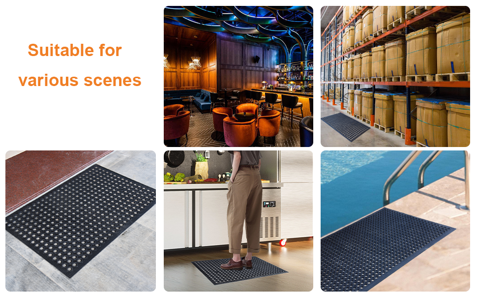 • متعددة الاستخدامات ومثالية لمختلف الإعدادات: تُعد سجادة الأرضية المطاطية التجارية الخاصة بنا مثالية لمجموعة متنوعة من الإعدادات، بما في ذلك المطاعم والمطابخ والحانات والحدائق والمناطق الرطبة الخارجية والمزيد.