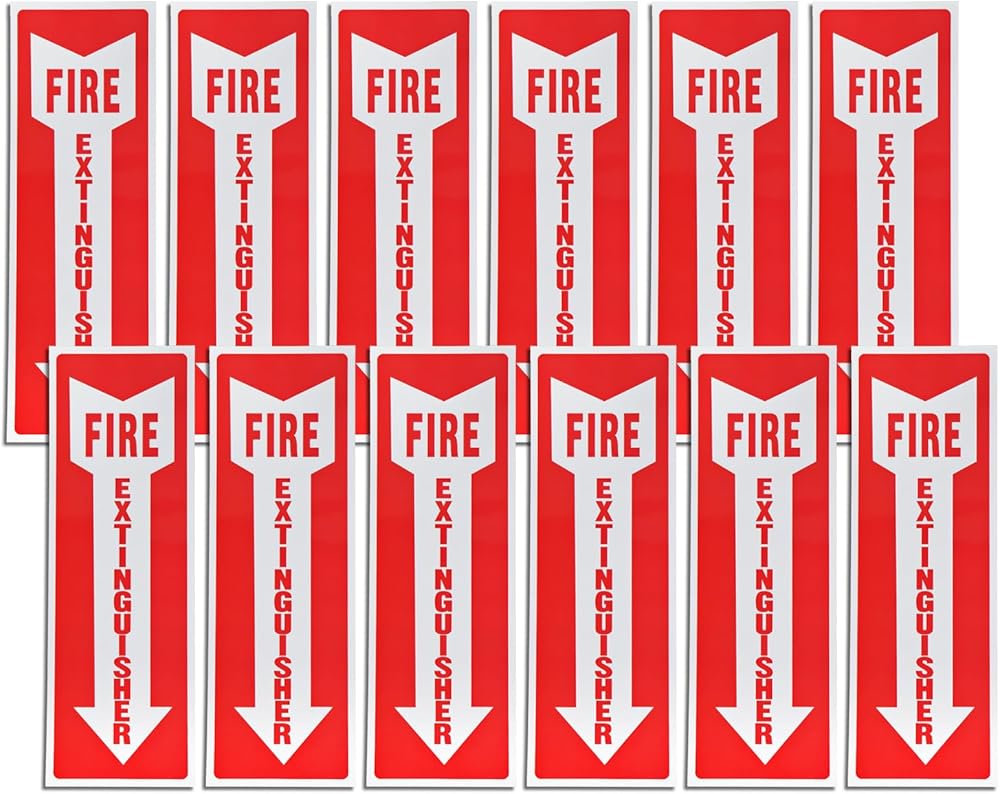 Pack of 12 fire extinguisher stickers signs has a dimension of 12x4 inches
