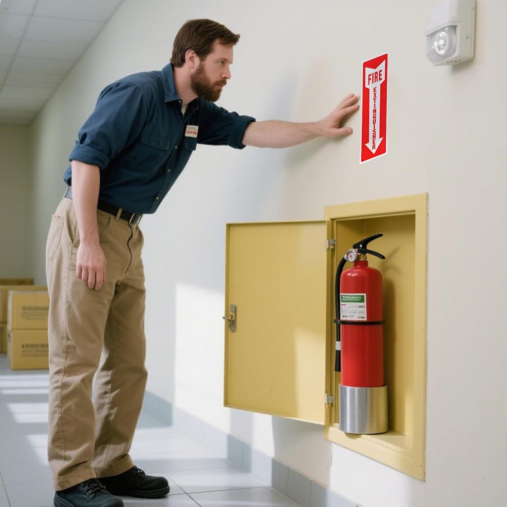12 PCs Fire Extinguisher Stickers with Arrows Business Fire Extinguisher Logo Self Adhesive Paper Safety Logo Stickers Safety Logo