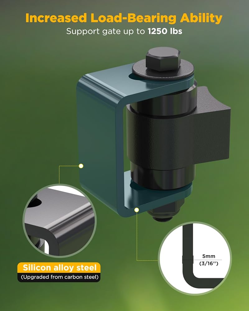 • كمية صغيرة من السيليكون في الفولاذ الكربوني: تُعرف أيضًا باسم سبائك السيليكون الفولاذية، مما يعزز قوتها وصلابتها ومقاومتها للتشقق، مما يسمح للحام شديد التحمل على مفصلات البوابة بدعم أكثر من 1250 رطلًا بسهولة.