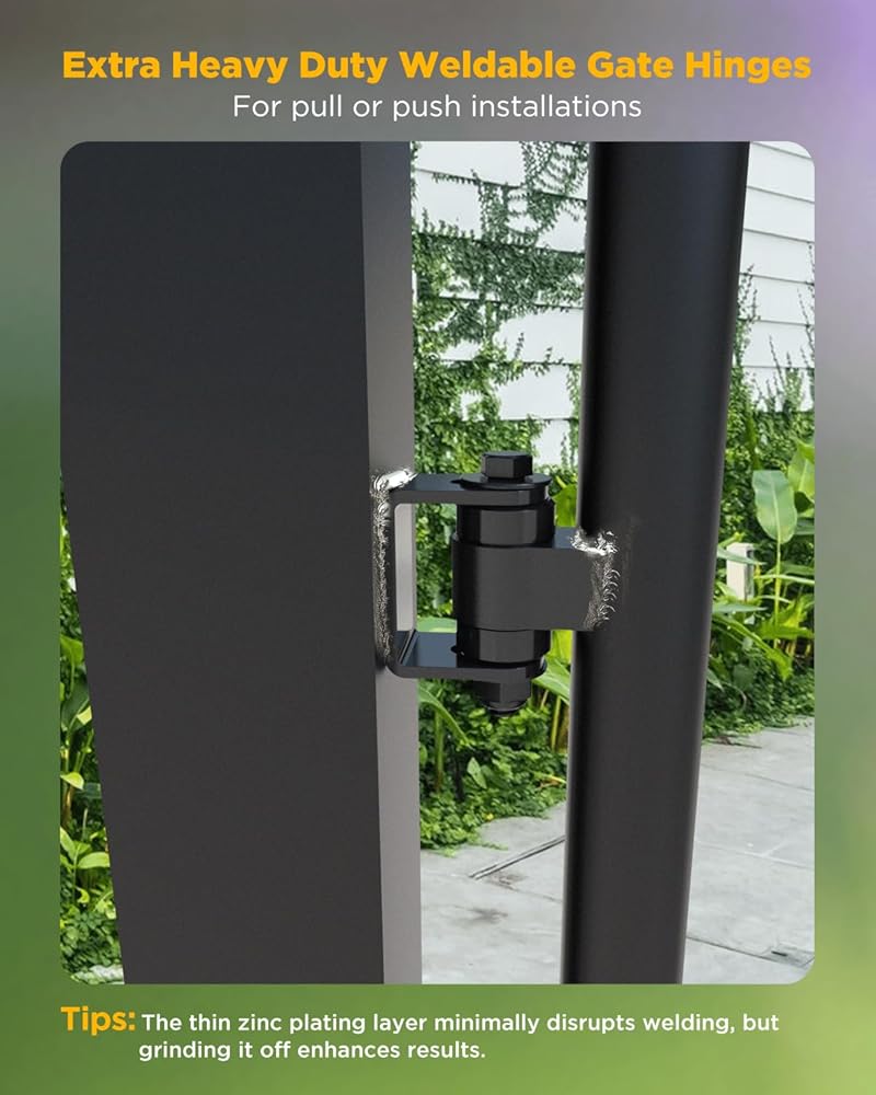 مفصلات بوابة قابلة للحام للبوابات المعدنية - لحام شديد التحمل على المفصلة بأحدث طراز محامل مختومة، مفصلات بوابة قابلة للتعديل للحام على بوابة مشاة للمركبات من الحديد أو الفولاذ الأكبر حجمًا (4 عبوات)