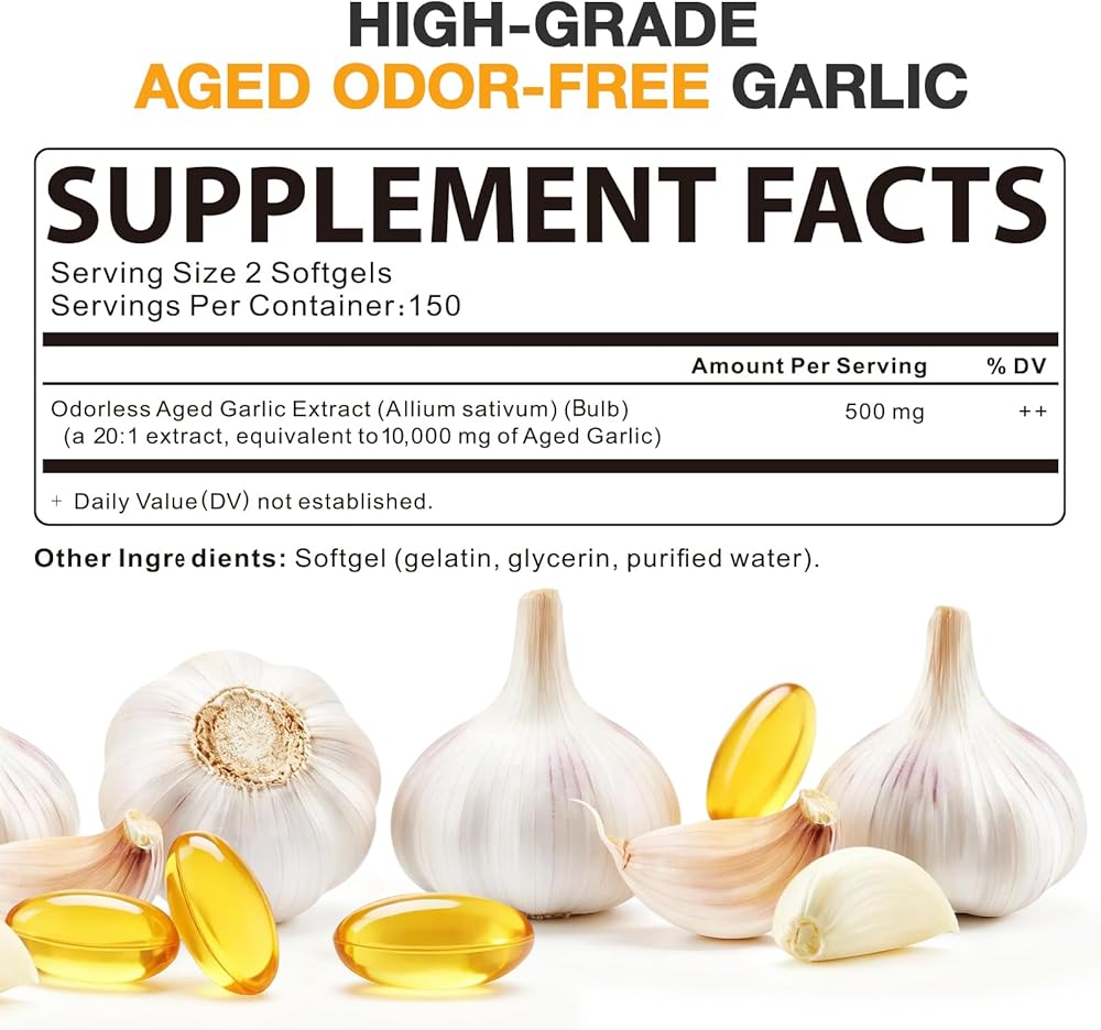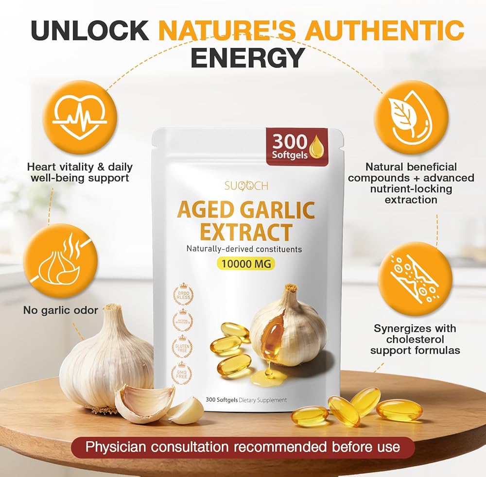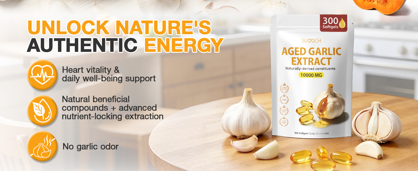 • [خالٍ من الرائحة ولطيف: لا يوجد إزعاج يومي] جني فوائد الثوم القديم دون روائح الثوم القوية أو تهيج الجهاز الهضمي. هذه الكبسولات الطرية المستخلصة من الثوم المعتق عديمة الرائحة لطيفة على القناة الهضمية، وخالية من الإضافات غير الضرورية، ويسهل دمجها في العادات اليومية.