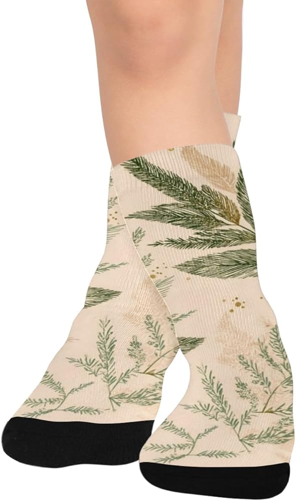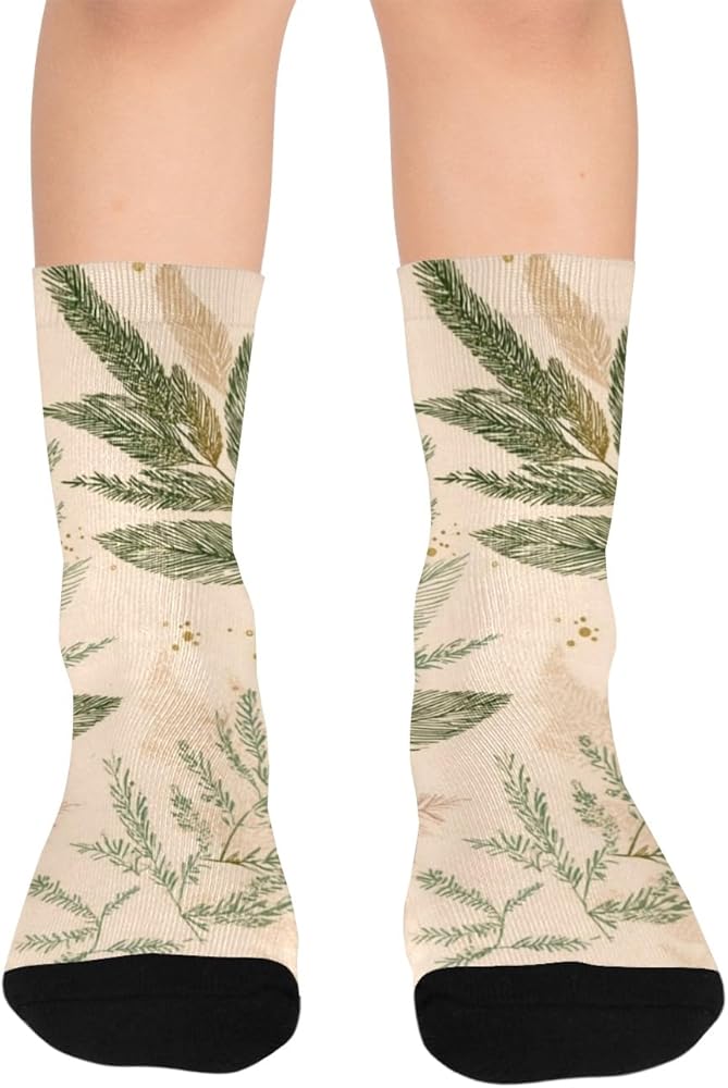 جوارب Boho Leaf Art باللون البيج للمشي لمسافات طويلة - جوارب شتوية حرارية سميكة دافئة للأولاد والبنات للمدرسة، والارتداء اليومي والأنشطة الخارجية