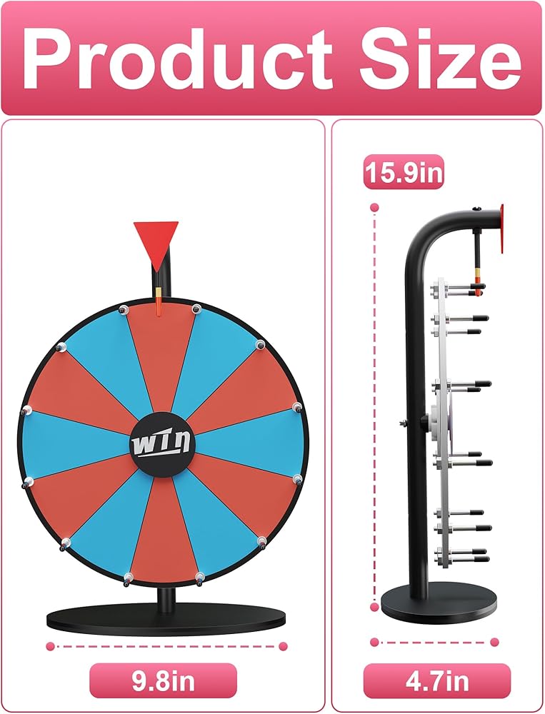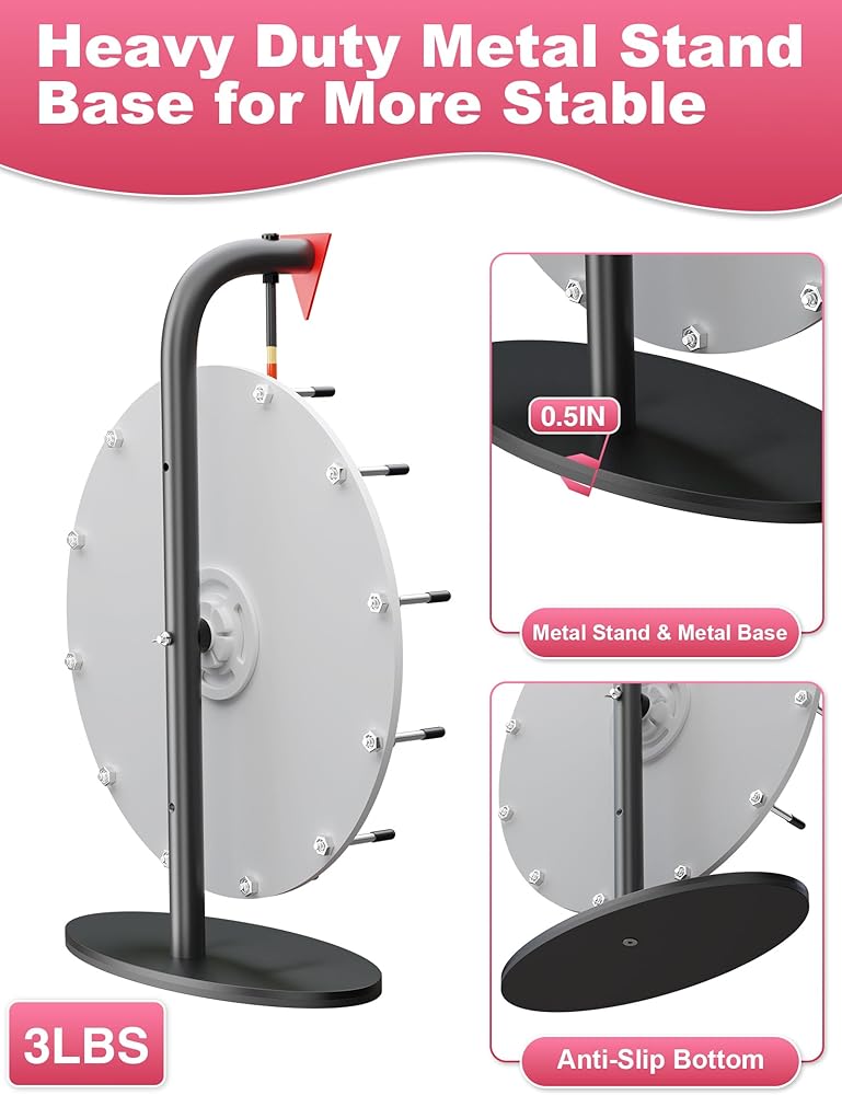 • 𝐏𝐫𝐨𝐟𝐞𝐬𝐬𝐢𝐨𝐧𝐚𝐥 ثابت 𝐏𝐫𝐢𝐳𝐞 𝐖𝐡𝐞𝐞𝐥 - بالمقارنة مع معظم العجلات الدوارة والفوز في السوق، فقد تم تعزيز عجلة الغزل الخاصة بنا. تعتمد القاعدة والحامل على مادة معدنية سميكة تزيد بشكل كبير من ثبات عجلة الدوران. مثالية للكرنفالات والعروض التجارية كعجلات الحظ الدوارة