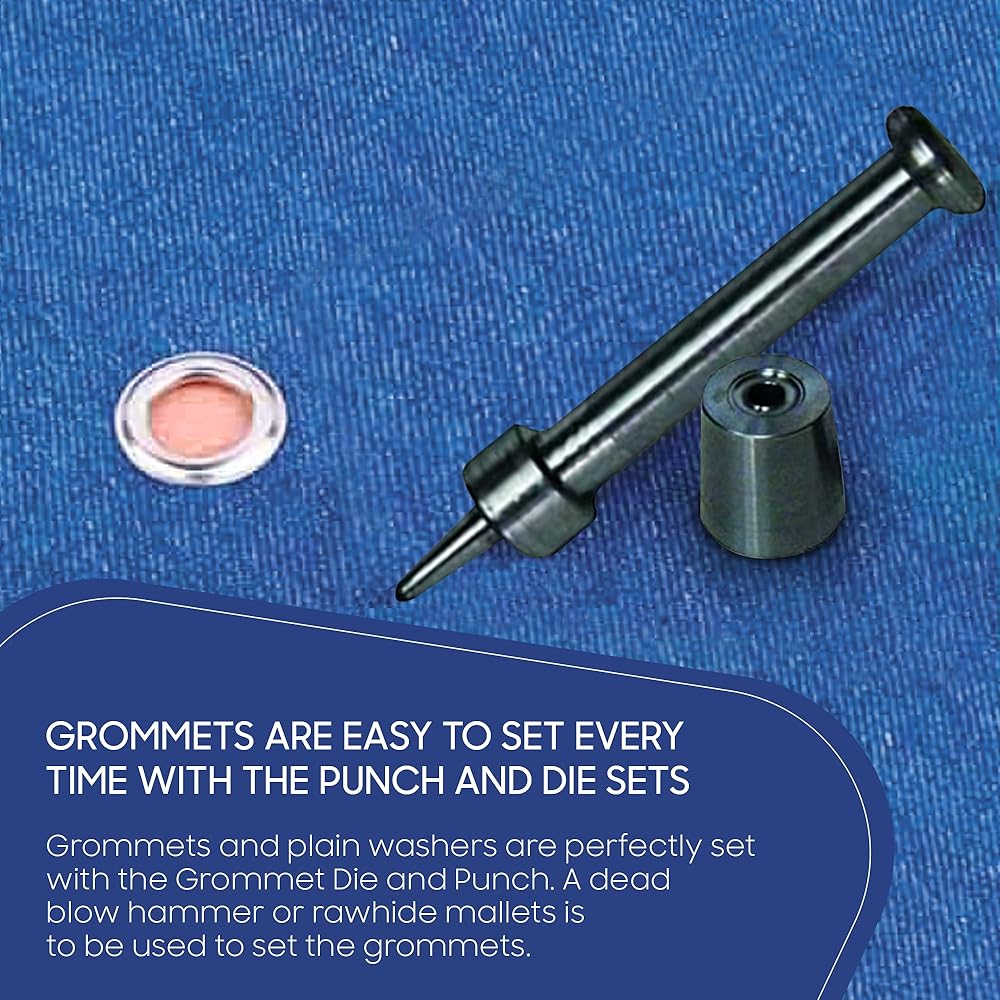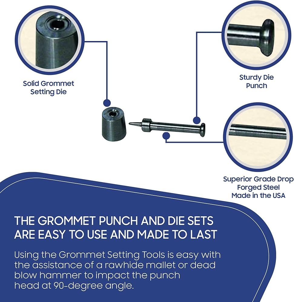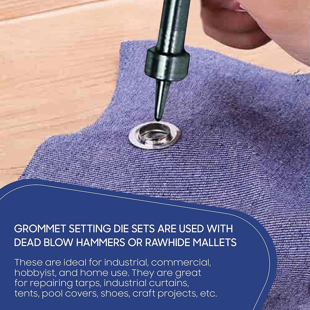 سهلة الاستخدام: تأتي في عملية استخدام سهلة. استخدم فقط مطرقة الضرب الميتة أو مطرقة الجلد الخام عند ضبط الحلقة المعدنية ولا تؤثر إلا على رأس الثقب بزاوية 90 درجة.