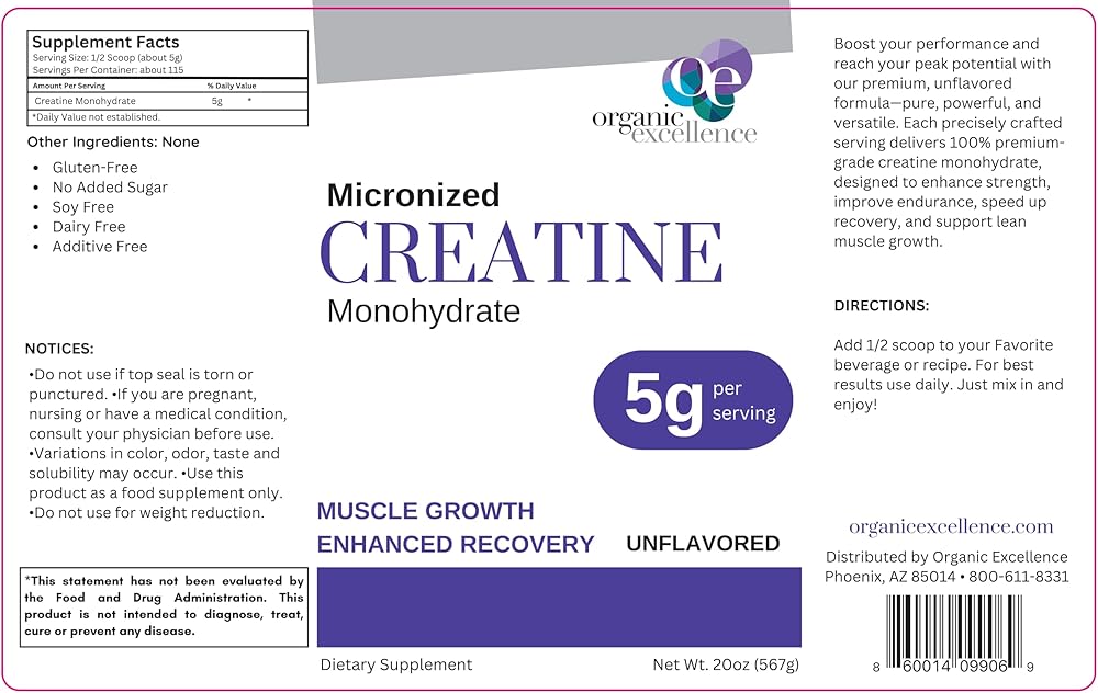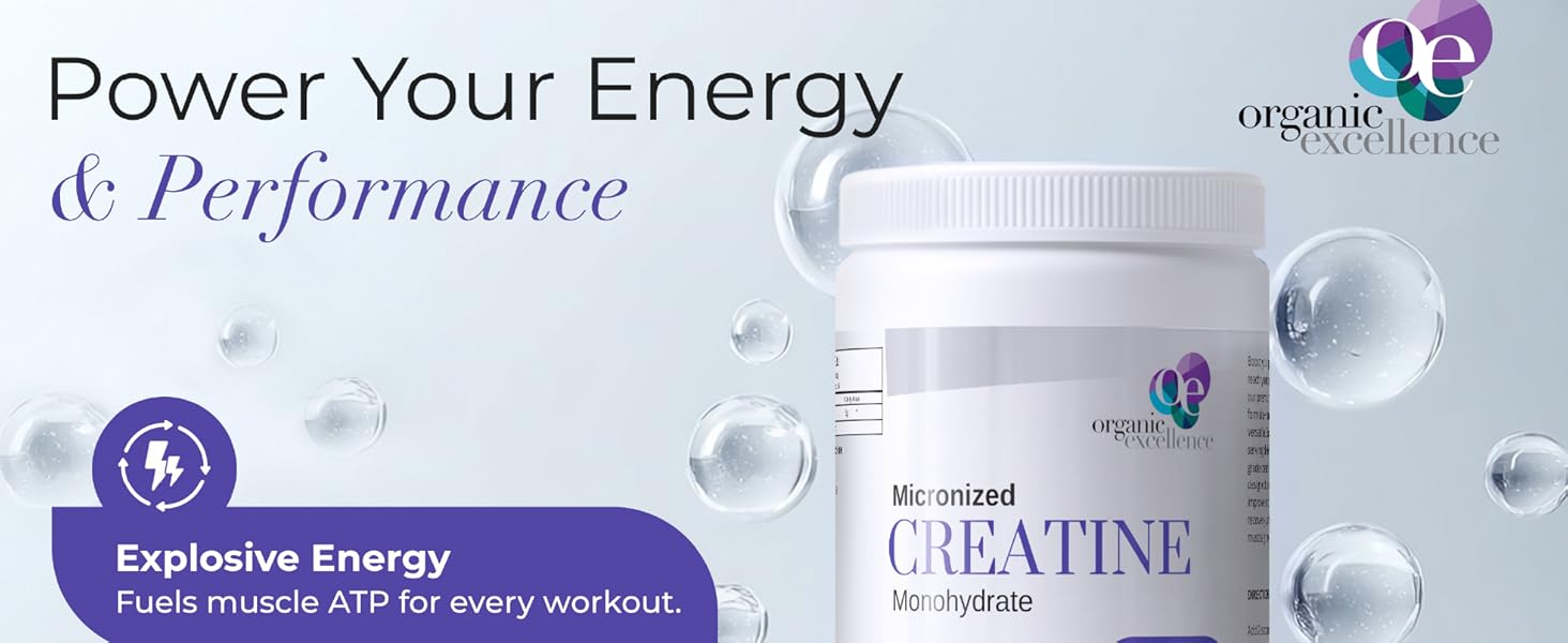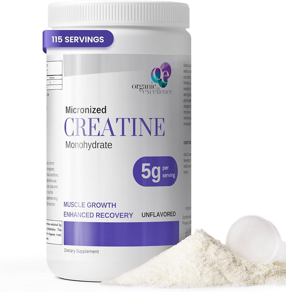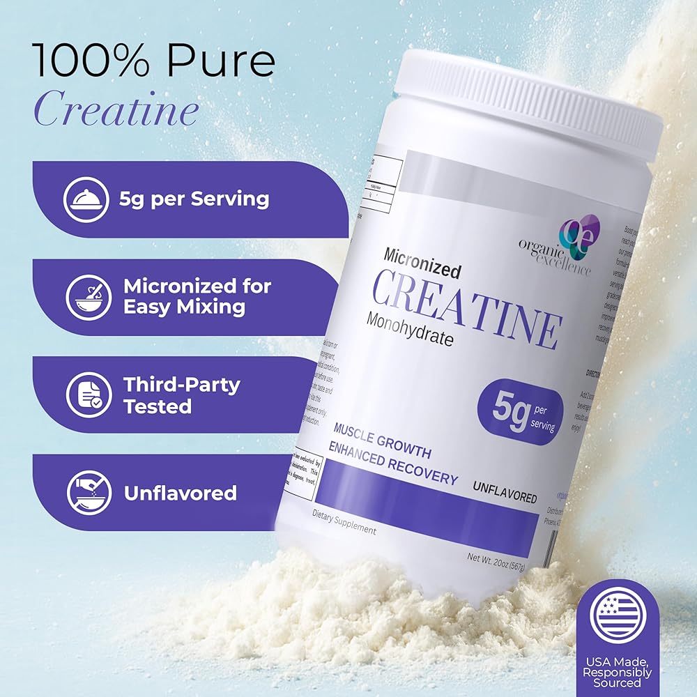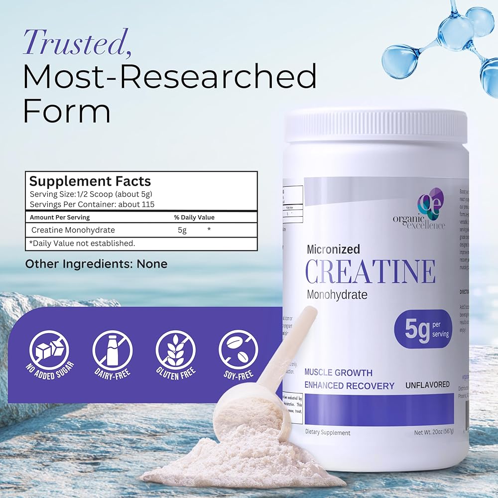 أورجانيك إكسيلانس كرياتين مونوهيدرات - مسحوق كرياتين ميكروني لنمو العضلات وقوتها واستعادتها - بدون نكهة، 115 حصة