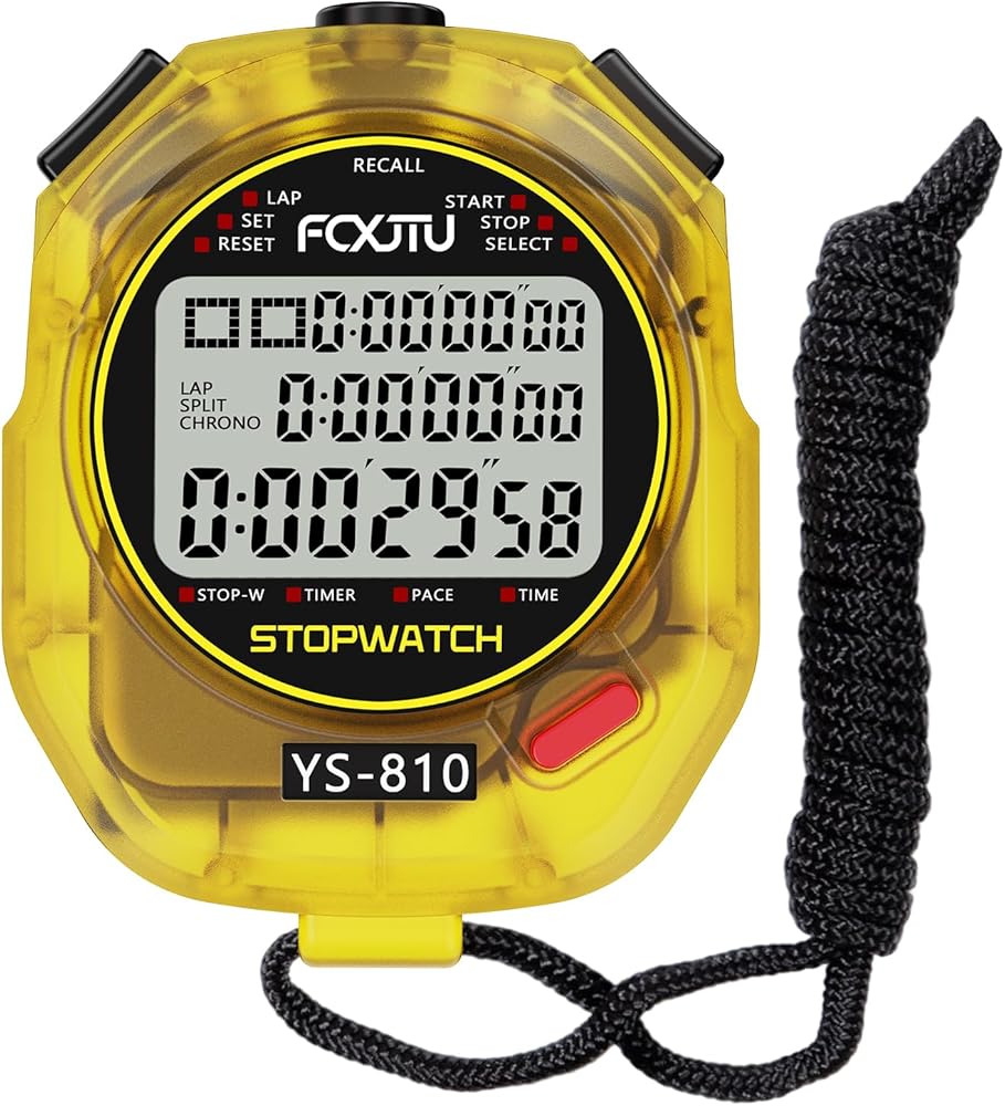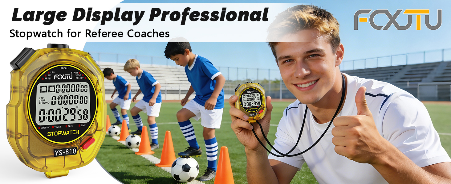ساعة إيقاف احترافية ذات شاشة كبيرة: 10 ساعات إيقاف مزدوجة قابلة للاستدعاء يمكن قياس ما يصل إلى 10 ساعات في 1/100 ثانية مع شاشة أرقام كبيرة مكونة من 3 صفوف للمدربين الرياضيين ومدرسي PE والحكام، وسهلة عرض الوقت وتسجيل البيانات