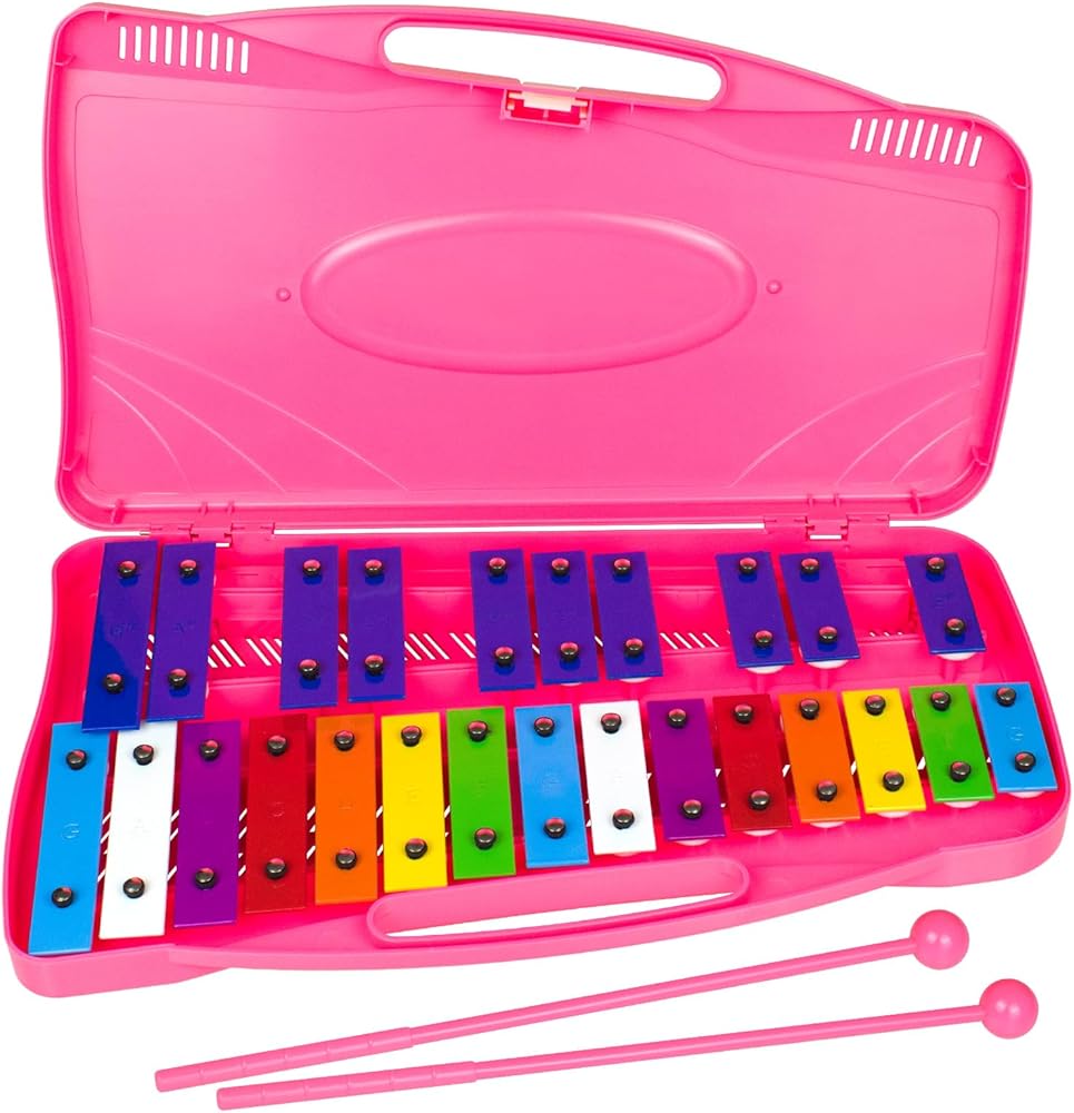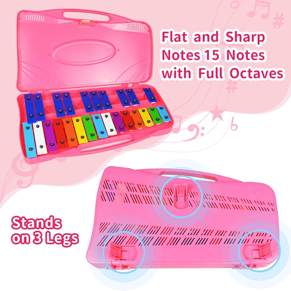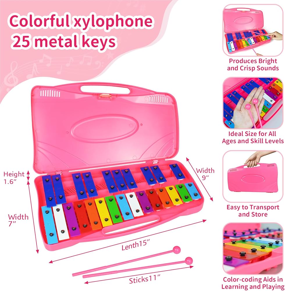 Unlock the joy of music with the EliLunar 25-Note Aluminum Glockenspiel. This professional percussion instrument is designed to provide a rich, authentic playing experience for aspiring musicians, students, and music lovers. Featuring 25 vibrant, color-coded keys made from premium aluminum, this glockenspiel delivers bright, clear tones across two full octaves. Each key is accurately tuned and marked with its note letter, facilitating an intuitive and educational playing experience that bridges visual cues with musical pitch. Built with durability and user experience in mind, the xylophone comes with two plastic mallets and a fitted carrying case. The case not only offers excellent protection for your instrument but also makes it highly portable - ready for practice at home, in music classes, or wherever inspiration strikes. Whether you're taking your first steps in music, teaching foundational concepts, or seeking a quality portable instrument, the EliLunar Glockenspiel is a reliable and enjoyable choice. Start your musical journey with confidence and clarity. Key Features: *25 high-quality aluminum keys with accurate tuning *Range of 2 full octaves (G to G) *Color-coded and note-labeled keys for easy learning *Includes 2 easy-grip mallets and a protective hard carry case *Lightweight, durable, and portable design *Ideal for beginners, music students, and educational use