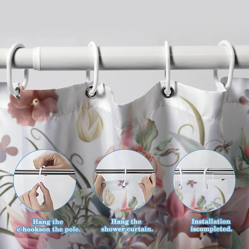• 【East To Install】Equipped with 12 rust-proof metal grommets and thickened C-shaped curtain hooks, this cottage core curtains features grommet holes that fit all types of rings or hooks for easy replacement and cleaning. The metal grommets prevent hole tearing and extend the curtain's service life. Installation is quick and hassle-free—simply hang the grommets onto your shower rod, making farmhouse shower curtains for bathroom suitable for various bathroom hanging needs.