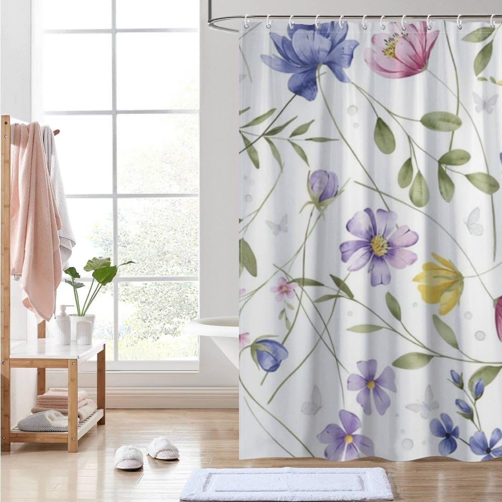 • 【Stylish Design】 Featuring high-definition one-sided digital printing combined with thermal dye sublimation technology, this shower curtain funny provides cute, unique patterns with vibrant colors. Fabric cloth shower curtains effectively resists fading to maintain long-lasting beauty and texture, instantly adding an eye-catching visual touch to your bathroom space.Vintage floral curtains retro shower curtain bohemian shower curtain shower curtain modern girly shower curtain