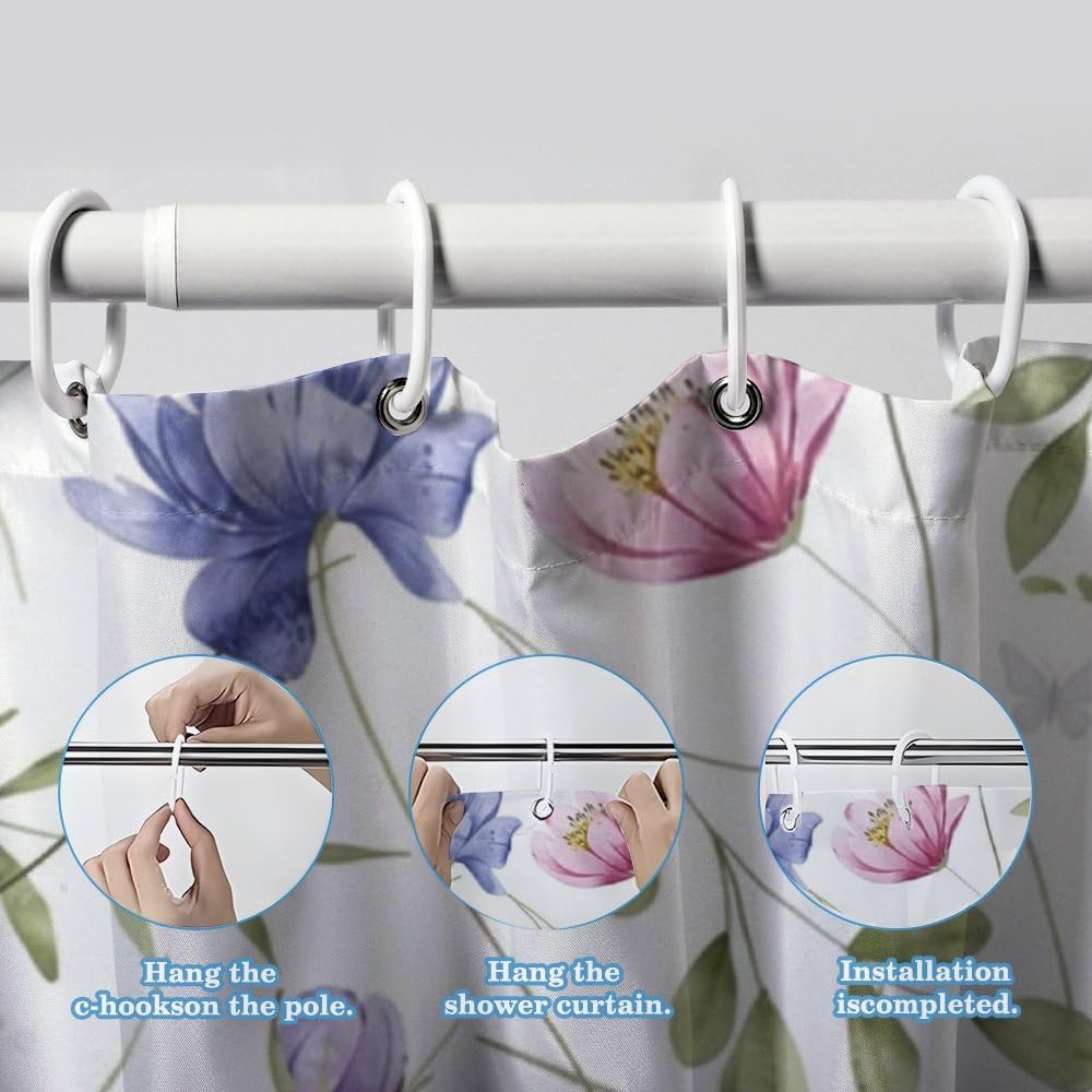• 【East To Install】Equipped with 12 rust-proof metal grommets and thickened C-shaped curtain hooks, this cottage core curtains features grommet holes that fit all types of rings or hooks for easy replacement and cleaning. The metal grommets prevent hole tearing and extend the curtain's service life. Installation is quick and hassle-free—simply hang the grommets onto your shower rod, making farmhouse shower curtains for bathroom suitable for various bathroom hanging needs.