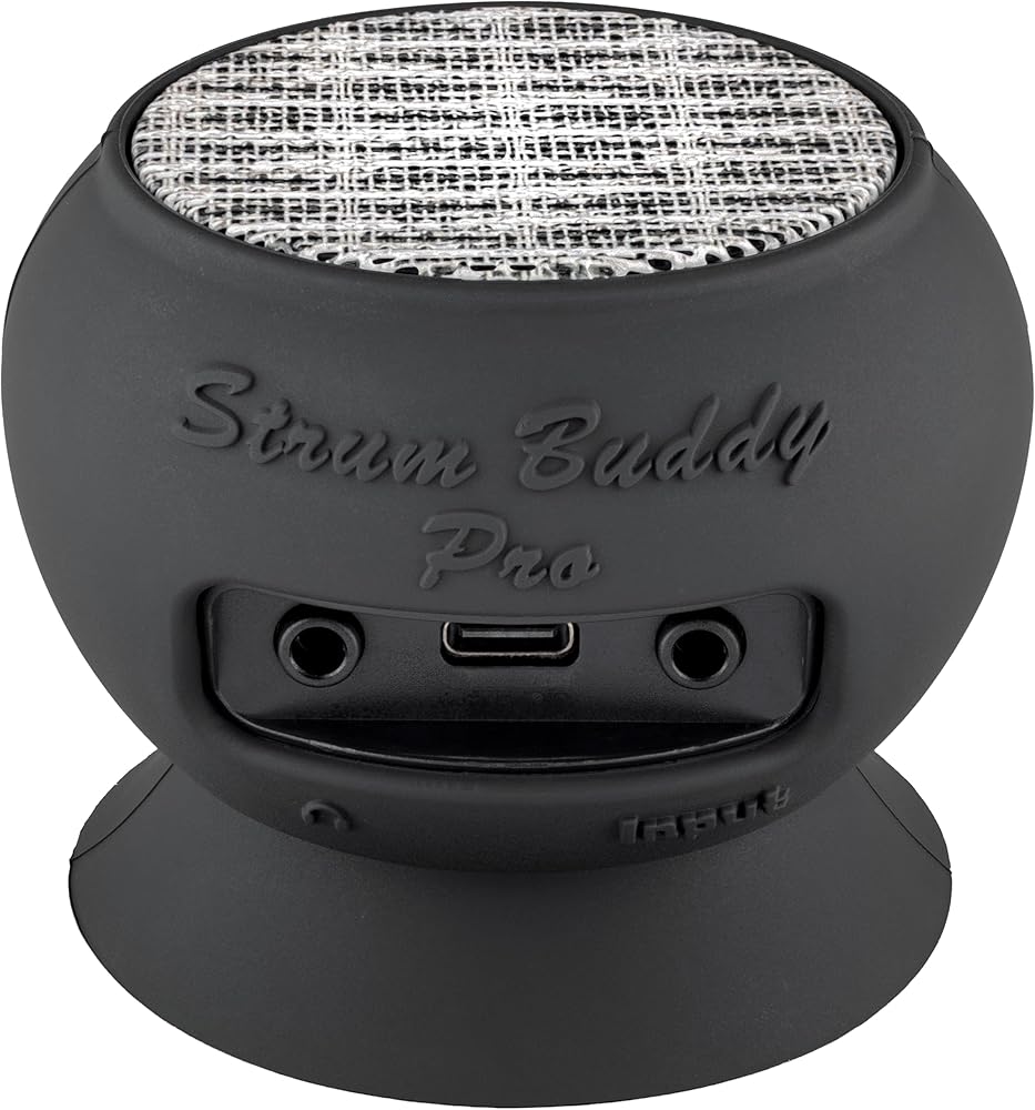 The Strum Buddy Pro is a next-generation portable guitar monitor and amplifier designed for players who want great tone, freedom, and convenience wherever they play. Building on the success of the original Strum Buddy, this upgraded version features a powerful 6-watt amplifier driving a larger 45 mm neodymium speaker for fuller, clearer sound in a compact form factor. It includes built-in DSP guitar effects such as distortion, chorus, and reverb to inspire creativity without the need for external pedals, plus a headphone output for silent practice sessions. The rechargeable lithium-ion battery delivers up to 3.5 hours of playtime on a single charge, and the safe rubber suction mount attaches directly to your guitar so you can play untethered by cables. With easy volume control and an FIR filter EQ curve that replicates the tone of a full guitar cabinet, the Strum Buddy Pro is ideal for home practice, jamming with friends, and music education settings where space and noise are limited. Each package includes the Strum Buddy Pro monitor/amplifier, USB-A to USB-C charging cable, 1/4″ to 3.5 mm mono guitar cable, and user manual, making it ready to use straight out of the box.