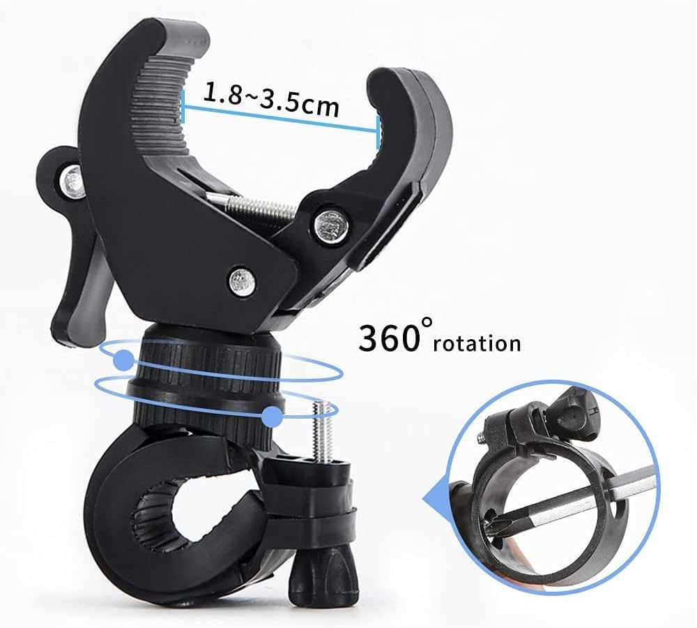 - 【سهل التركيب】يستخدم حامل المصباح اليدوي للدراجة تركيبًا لولبيًا، ويمكن تثبيته بإحكام على مقود الدراجة دون أن يسقط، لذلك يمكنك استخدامه بثقة.