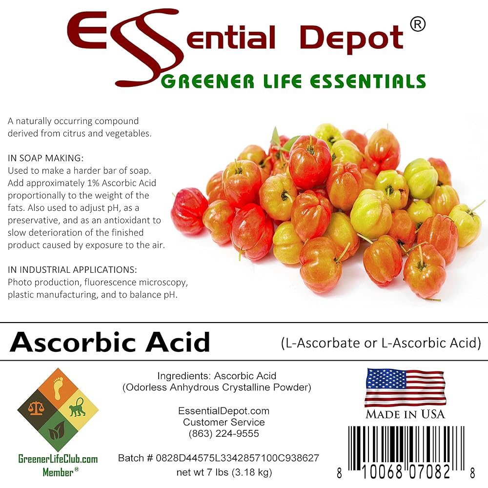 • SOAP MAKING: Used to make a harder bar of soap. Add approximately 1% Ascorbic Acid proportionally to the weight of the fats. Also used to adjust pH, as a preservative, and as an antioxidant to slow deterioration of the finished product caused by exposure to the air.