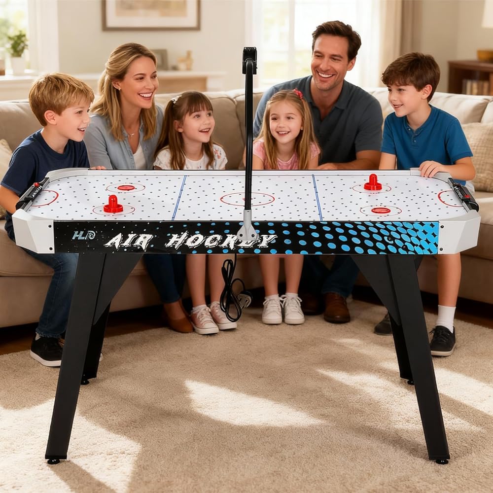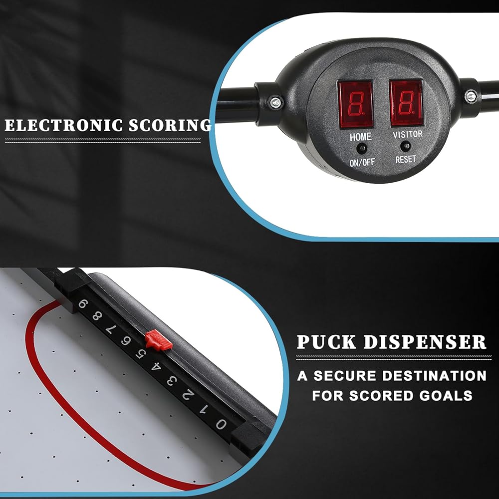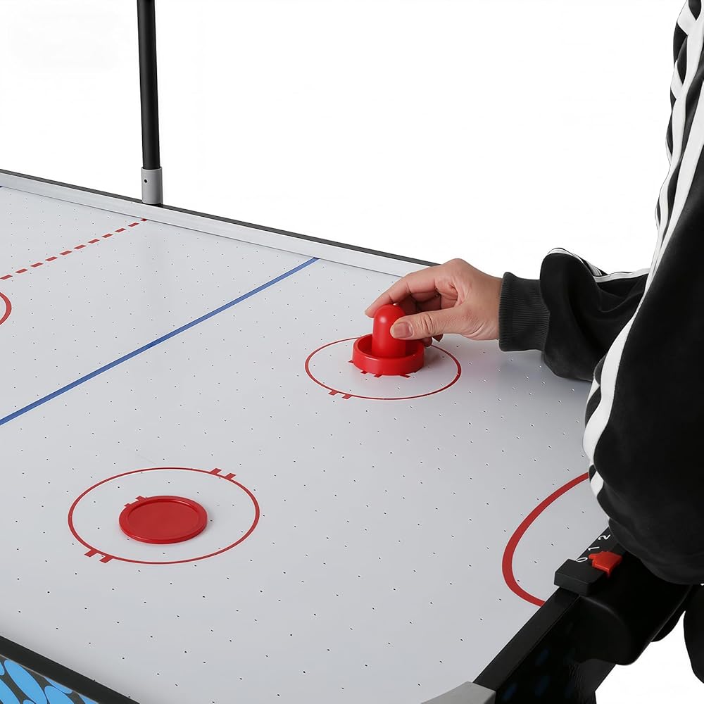 محرك قوي بجهد 12 فولت للعمل سريع الوتيرة: استمتع بتجربة لعب أصلية على مستوى الممرات! تعمل طاولة الهوكي الهوائي هذه بمحرك قوي 12 فولت، وتولد وسادة هوائية ثابتة وقوية، مما يضمن انزلاق القرص بسلاسة وسرعة للحصول على تجربة لعب مثيرة بدون توقف.