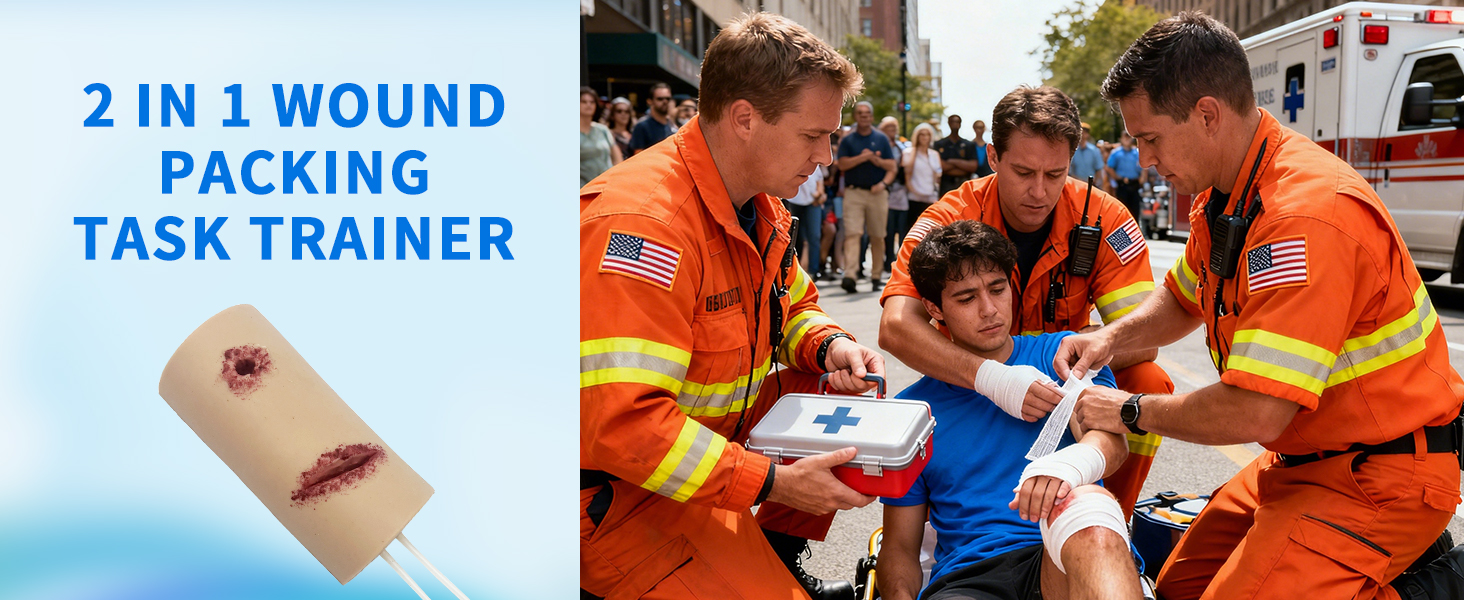 ➤ أداة التدريب الأساسية: يمكن استخدام تمثال الجروح الخاص بنا من قبل أقسام الإسعافات الأولية وشركات التدريب لتوفير تدريب متكرر على تعبئة الجروح. مدرب تعبئة الجروح. يساعد هذا في تطوير تقنية التعبئة المناسبة و"الذاكرة العضلية" اللازمة للتعبئة بشكل صحيح في المواقف العصيبة.