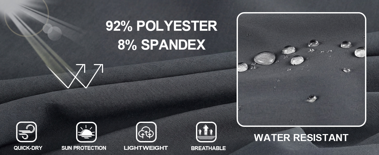 • [حماية من الشمس]: يمكن للنسيج بعامل حماية من أشعة الشمس 50+ أن يحجب معظم الأشعة فوق البنفسجية الضارة، ويحمي بشرتك الحساسة أثناء الأنشطة الخارجية.