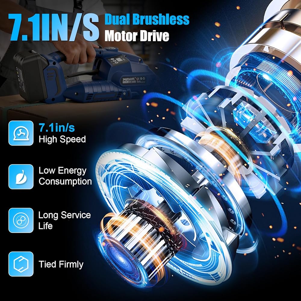محرك عالي الأداء بدون فرش: توفر أداة الربط هذه سرعات ربط سريعة تبلغ 7.1 بوصة/ثانية وقوة شد قصوى مذهلة تبلغ 3200 نيوتن. وتوفر 10 إعدادات شد قابلة للتعديل، مما يسمح بالتكيف الدقيق مع أنواع العبوات المختلفة. تم تصميمه للتطبيقات الصعبة ذات الحجم الكبير، فهو يضمن إنتاج طاقة عالية متسقًا وعمر خدمة ممتدًا وتقليل متطلبات الصيانة بشكل كبير