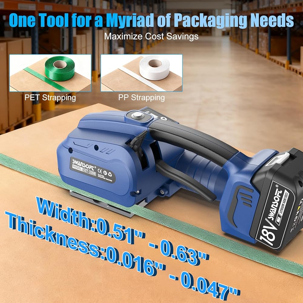 لربط PP وPET: تم تصميم آلة الربط الكهربائية هذه لتعدد الاستخدامات، وتستوعب كلاً من أشرطة PP وPET بعرض يتراوح من 0.51 بوصة إلى 0.63 بوصة وسمك من 0.016 بوصة إلى 0.047 بوصة. إنه الحل الأمثل لتأمين صناديق الشحن، وتعزيز الصناديق المتحركة، وتجميع مواد البناء، وتثبيت الأحمال المنقولة على منصات النقل في عمليات المستودعات.