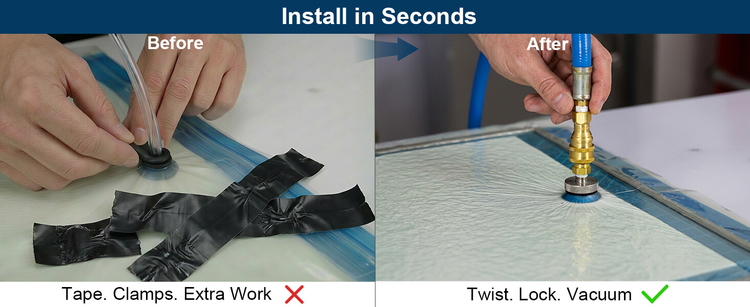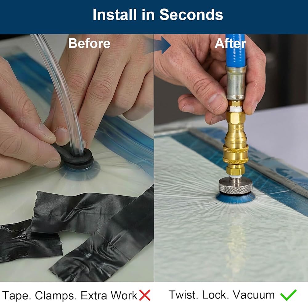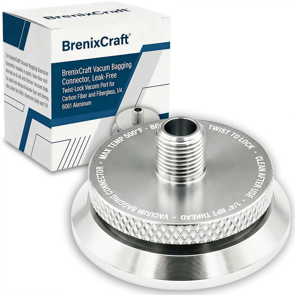 موصل تعبئة الفراغ، منفذ فراغ بقفل ملتوي مانع للتسرب لألياف الكربون والألياف الزجاجية، 1/4 بوصة NPT، 6061 ألومنيوم
