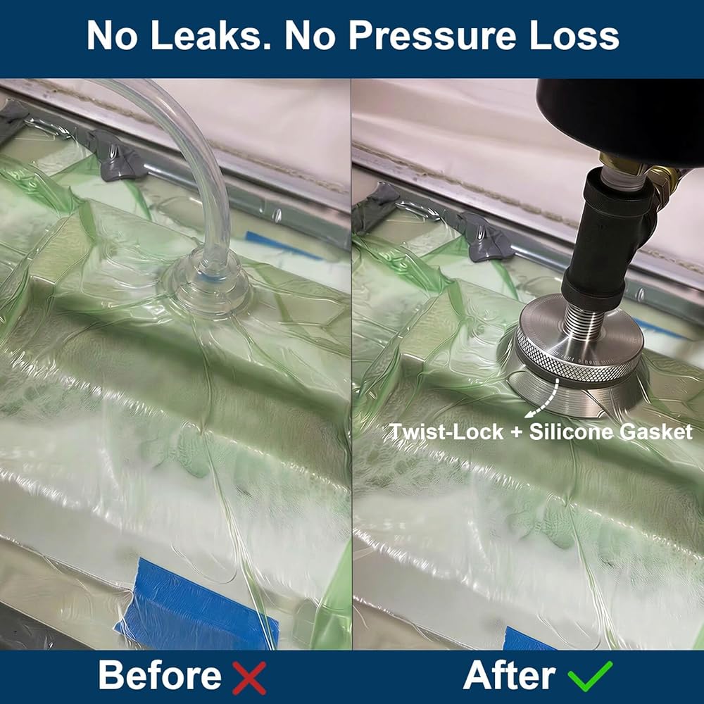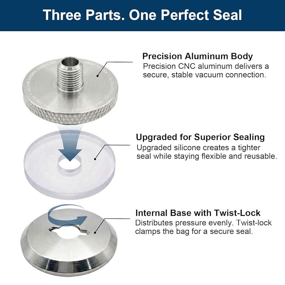 • ختم مانع للتسرب: يتميز موصل تعبئة التفريغ هذا بتصميم قفل ملتوي يخلق إغلاقًا محكمًا فوريًا على أكياس مكنسة كهربائية سعة 6 مل وأكثر سمكًا لمنع فقدان الضغط أثناء وضع الكرة.