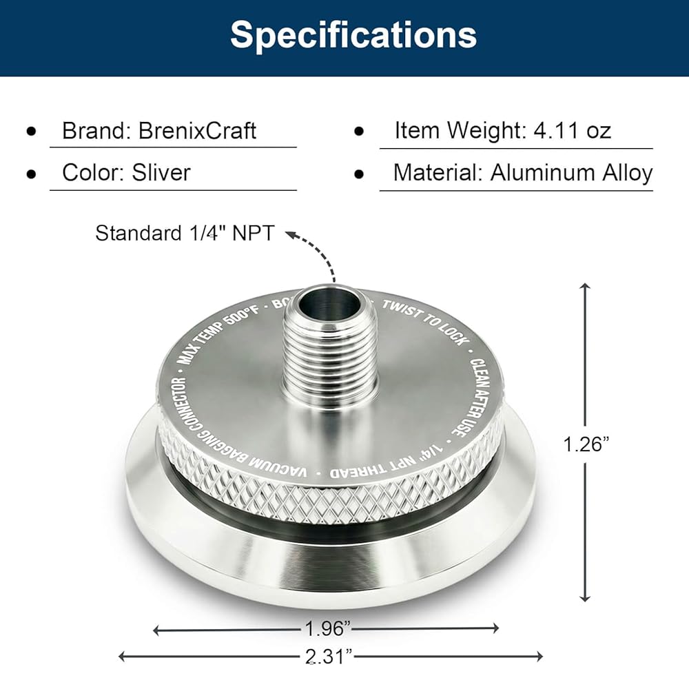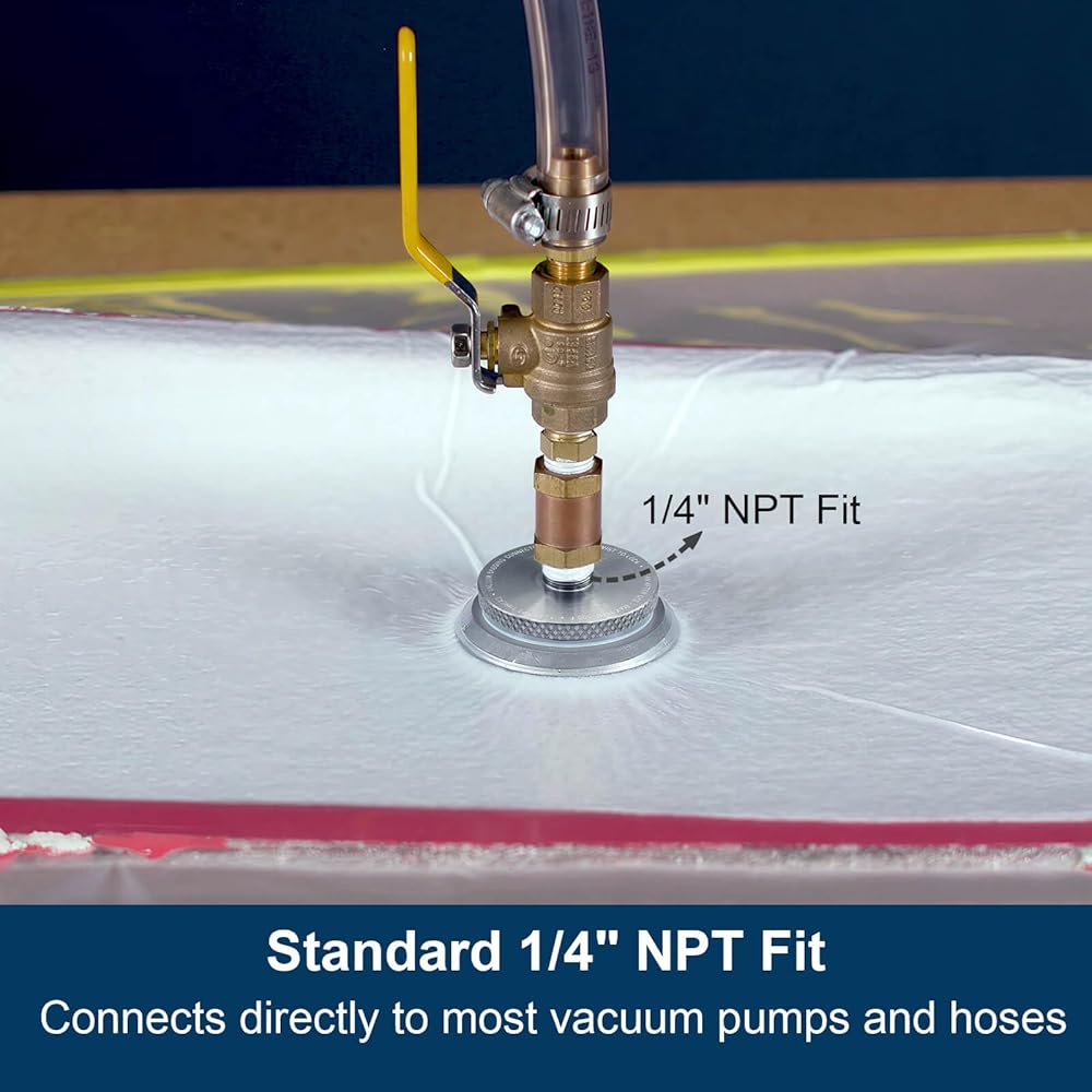 • التوافق القياسي 1/4 بوصة NPT: مصمم بخيوط ذكرية قياسية 1/4 بوصة NPT للتوصيل مباشرة بمعظم خراطيم ومضخات التفريغ، مما يضمن ملاءمة آمنة بدون محولات.