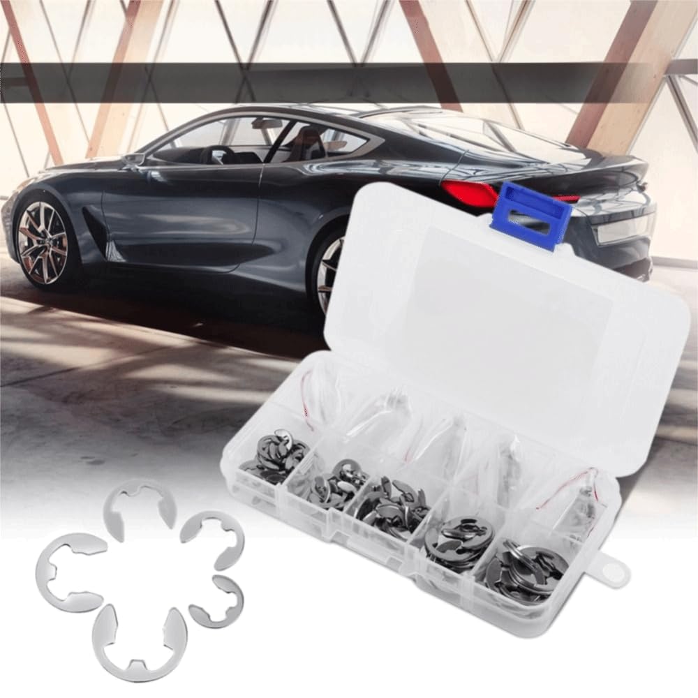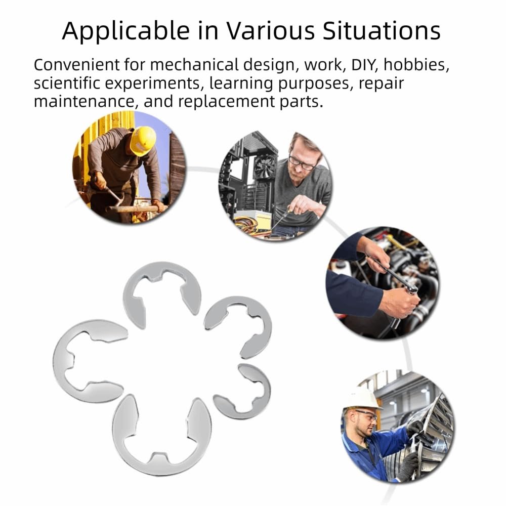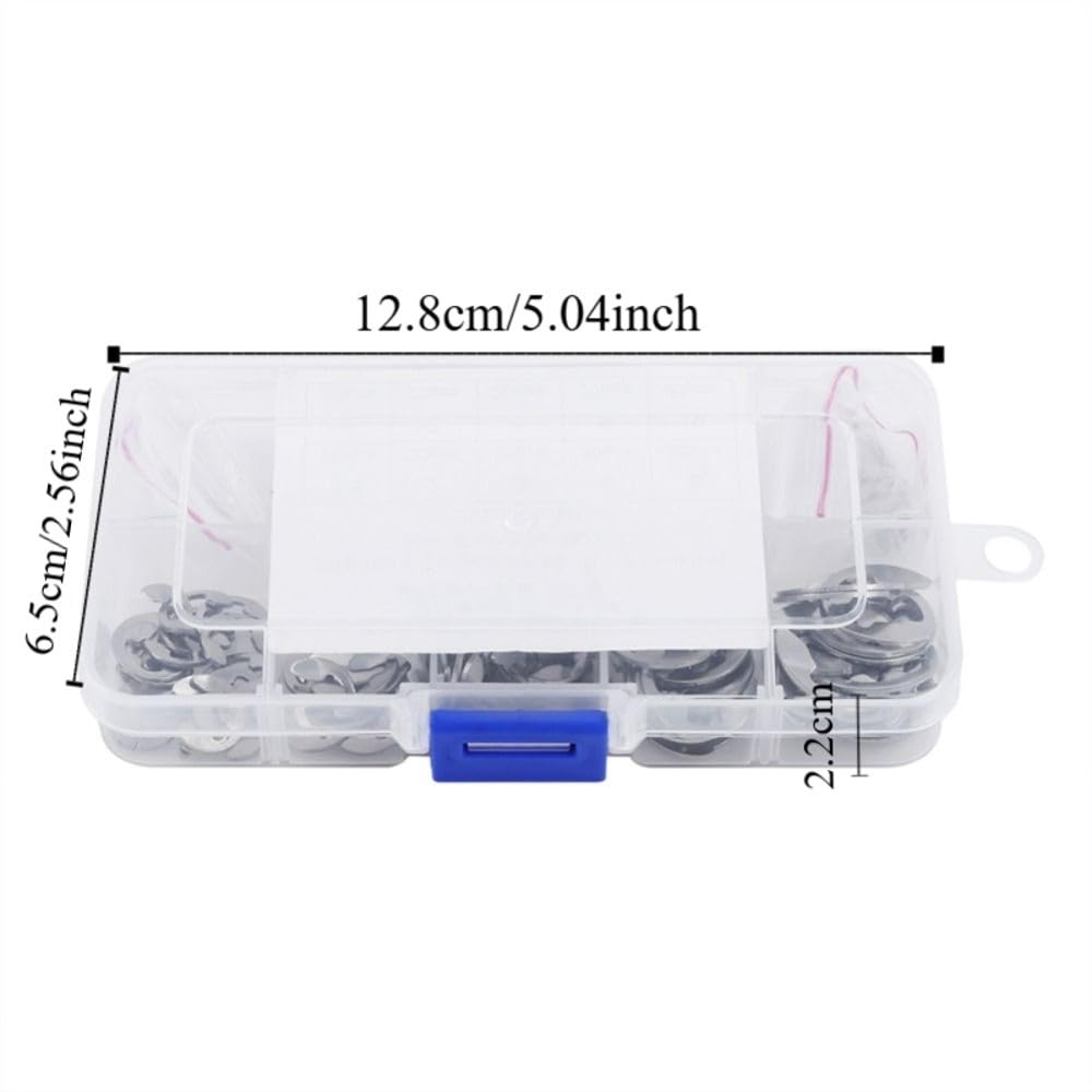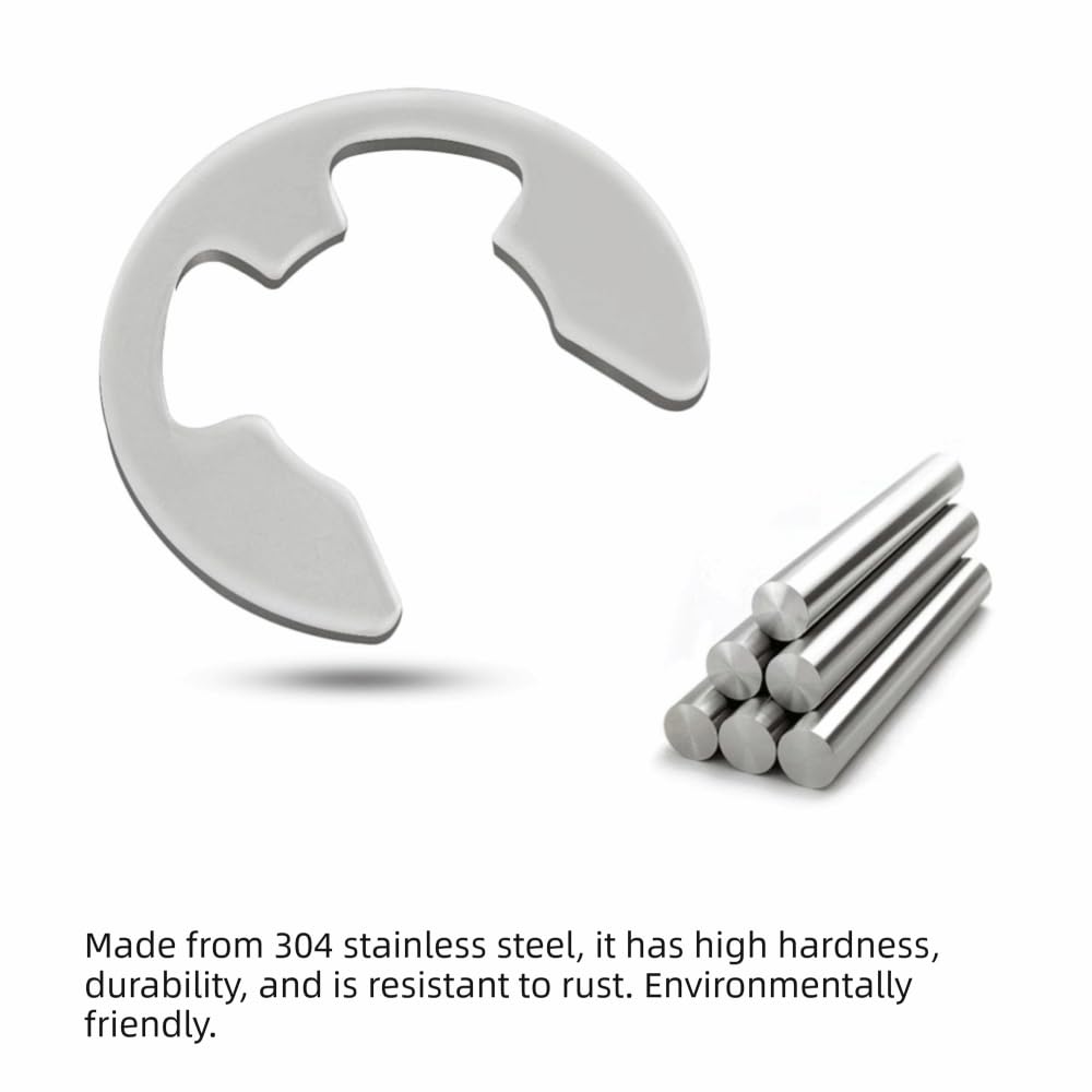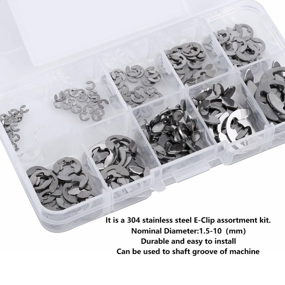 Durable 304 stainless steel E clip retaining rings provide reliable shaft groove fastening for mechanical assemblies. This assortment kit offers easy installation and for long-term performance in industrial applications.