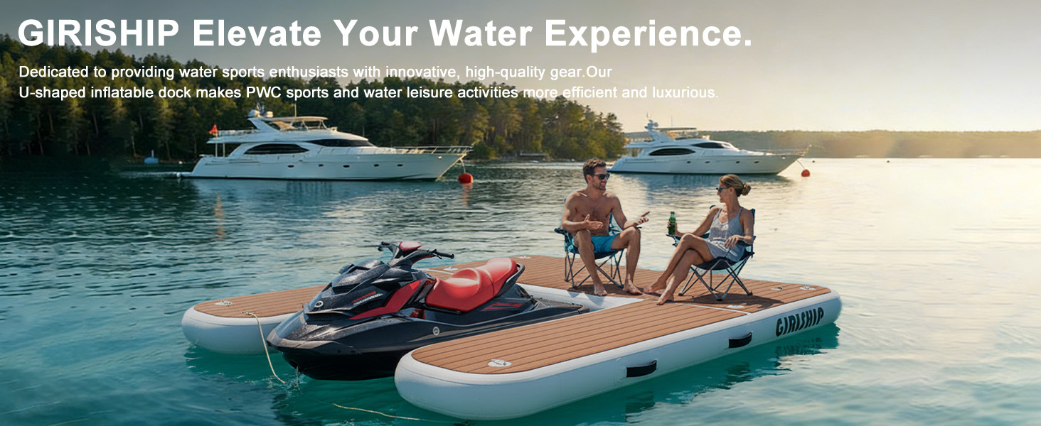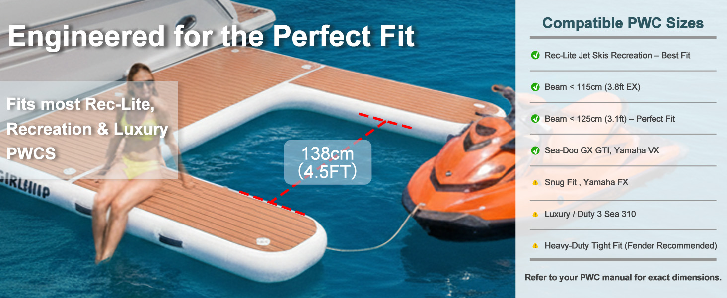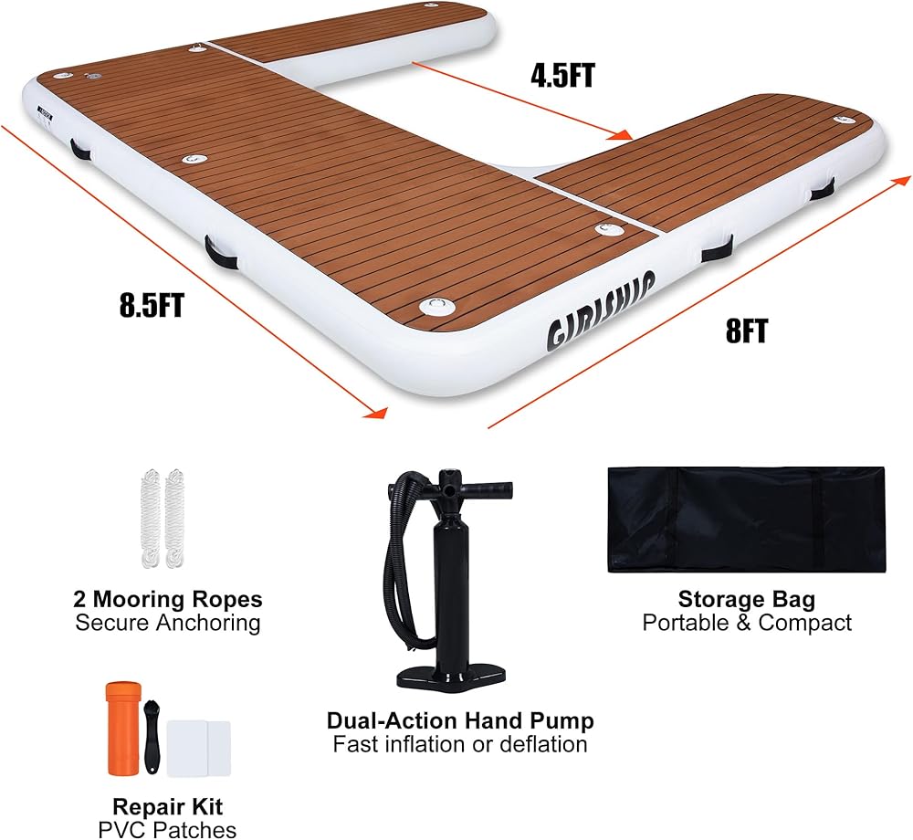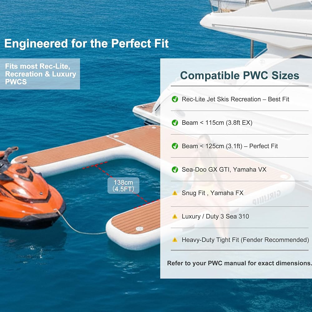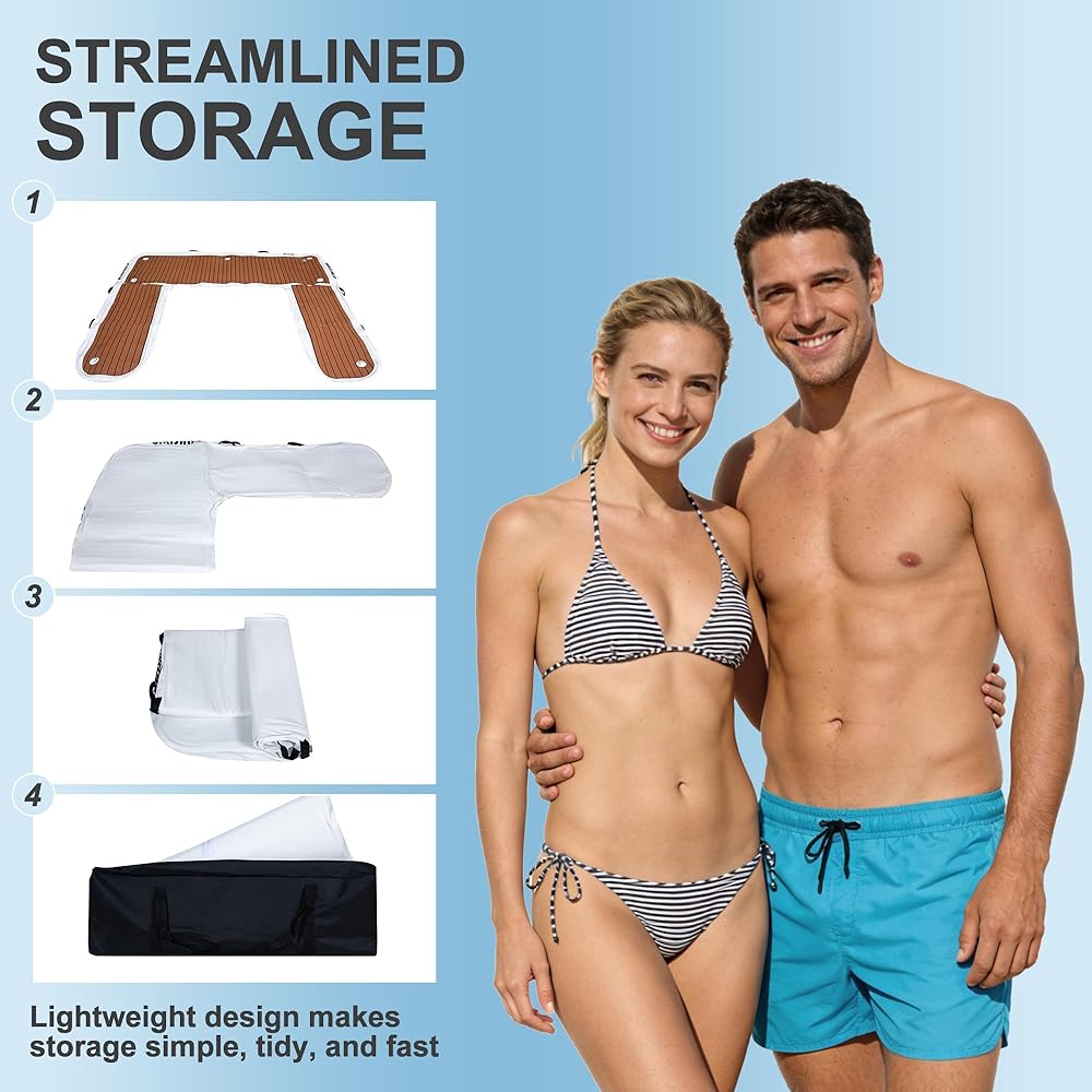 رصيف عائم صلب قابل للنفخ: PVC شديد التحمل ذو غرز متدلية يخلق منصة عائمة صلبة بسمك 6 بوصات. توفر منصة PWC هذه استقرارًا لا مثيل له على البحيرة أو المحيط أو المرسى للعديد من البالغين