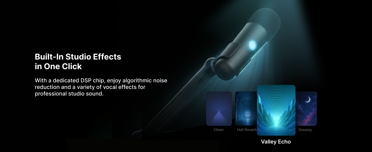 • ✨【تأثيرات بجودة الاستوديو بنقرة واحدة】يعمل الميكروفون بشريحة DSP مخصصة، ويتميز بتقليل الضوضاء الخوارزمية وتأثيرات صوتية متعددة للحصول على صوت بجودة الاستوديو. يمكنك تبديل التأثيرات بنقرة واحدة بسيطة.