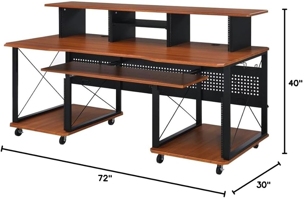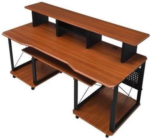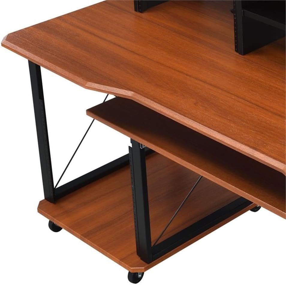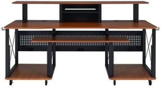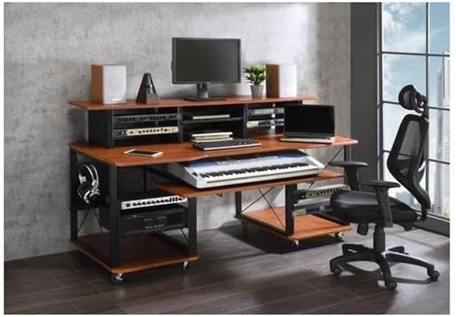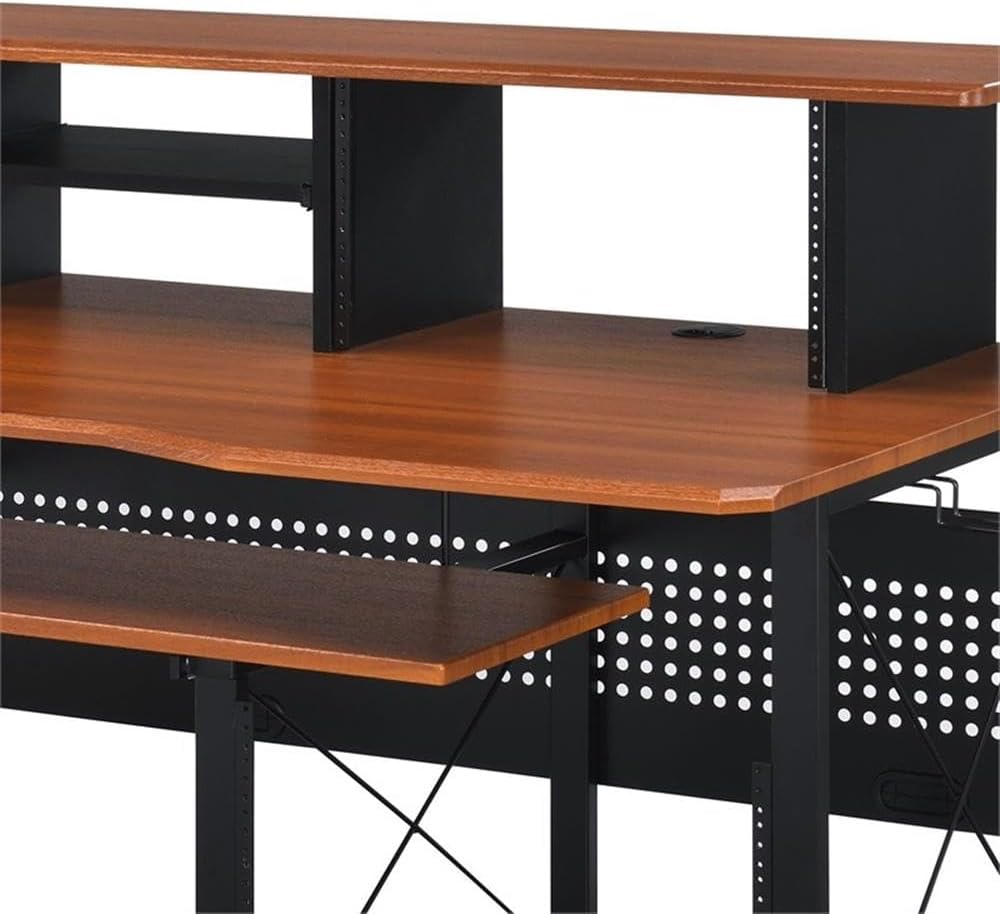 مكتب الموسيقى المعاصر من BOWERY HILL، لمسة نهائية من الكرز والأسود، هيكل MDF ومعدن، 72 بوصة × 30 بوصة × 40 بوصة، 6 مقصورات مفتوحة، صينية لوحة المفاتيح، إدارة السلك، صندوق مع رف للاستوديو أو