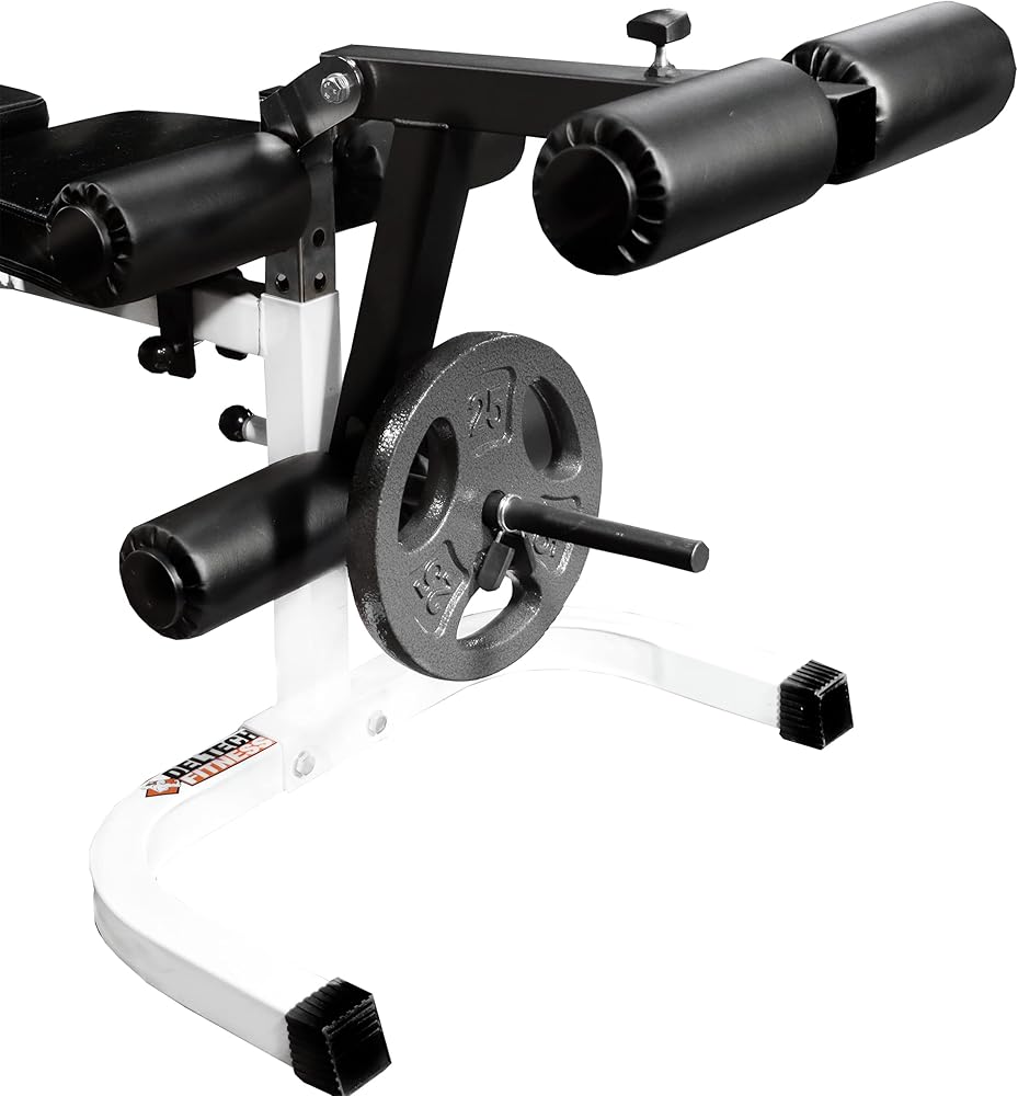 مرفق تمديد الساق DF106 - قابل للتعديل بالكامل لتدريب الساق المعزولة في صالة الألعاب الرياضية المنزلية - سعة 300 رطل - لوحة محملة باللوحة القياسية والأولمبية لتدريب القوة من Deltech Fitness