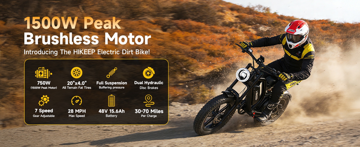 HiKeep Electric Bike for Adults - 16/20 Inch Fat Tire Ebike, 750W/Peak 1500W Motor Ebike, 48V15.6AH Detachable Battery, 4 Riding Modes Electric Dirt Bike
