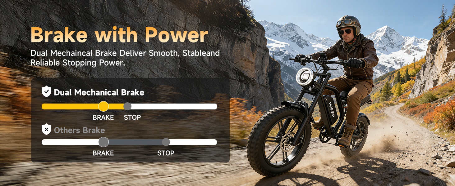 Responsive Dual Disc Brakes for Maximum Safety: Front and rear mechanical disc brakes ensure powerful and reliable stopping performance, even at high speeds or on wet and slippery roads