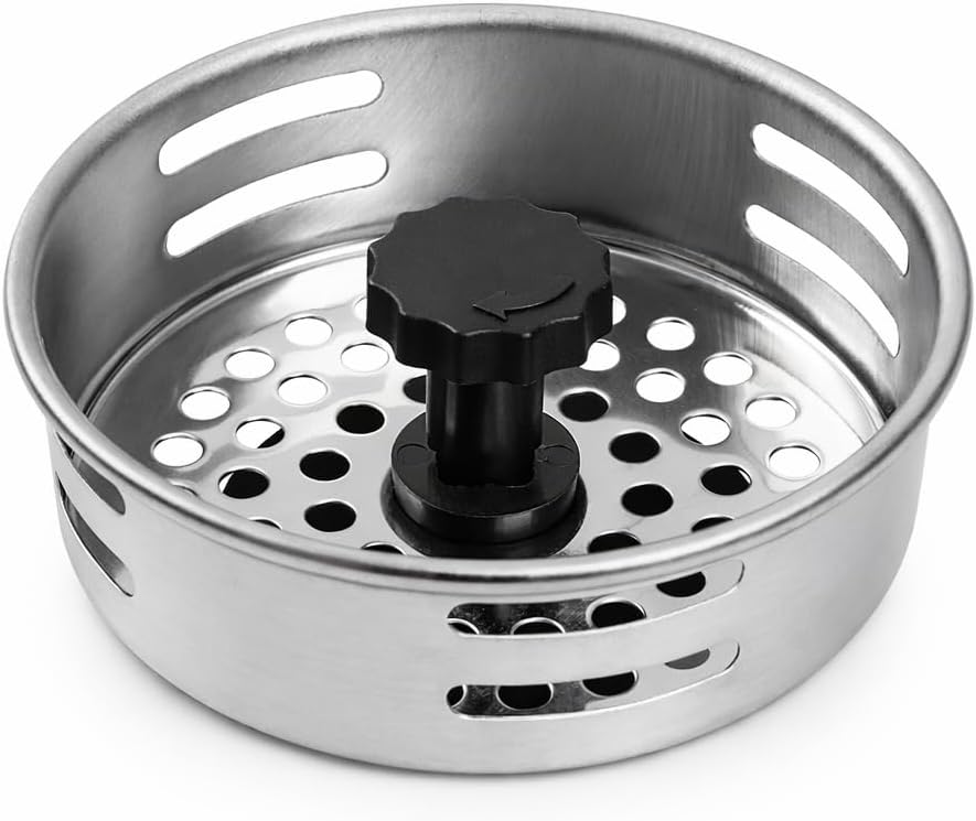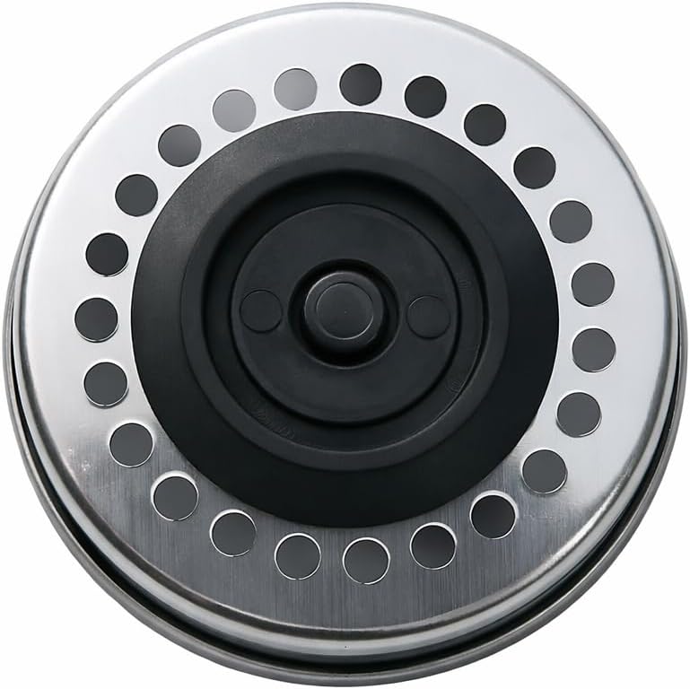 This versatile kitchen sink strainer and stopper is an essential tool for keeping your drain clear and functional. Crafted from durable stainless steel with a rust-resistant finish and reinforced rubber components, this strainer is built to withstand daily use in busy kitchens. The universal round design fits most standard sink drains, making installation simple and straightforward. What sets this strainer apart is its adjustable stopper mechanism—simply lift and rotate 90 degrees to switch between draining and water retention modes. When closed, it creates a tight seal to hold water in your sink for soaking dishes or washing vegetables. When open, it allows water to flow freely while the perforated basket catches food particles, preventing clogs and keeping your pipes clear. The strategically placed holes ensure efficient drainage while trapping even small debris. Cleanup is effortless—just lift out the strainer, dispose of collected waste, and toss it in the dishwasher for thorough cleaning. The sleek silver and black design complements any kitchen decor while providing reliable performance you can count on.
