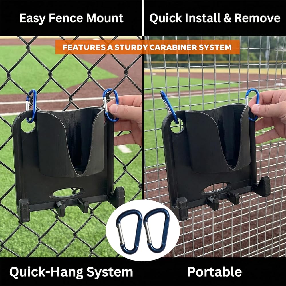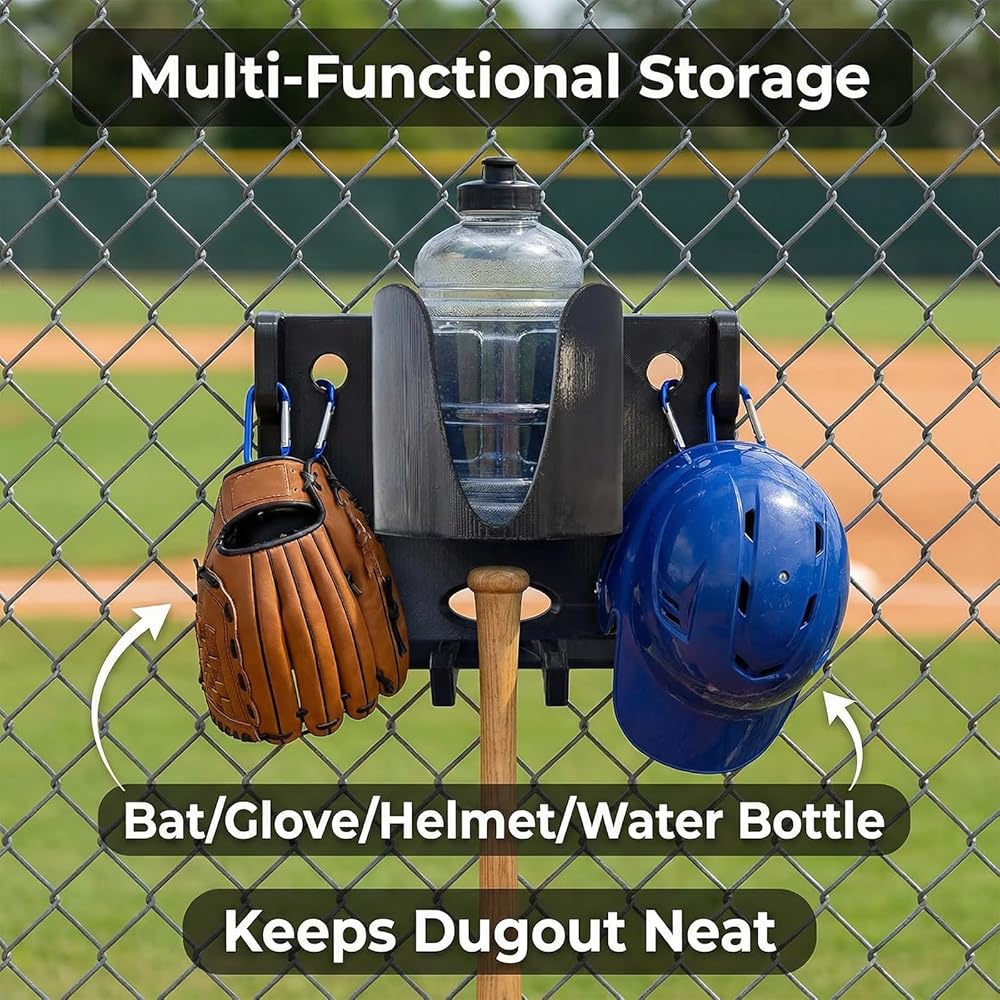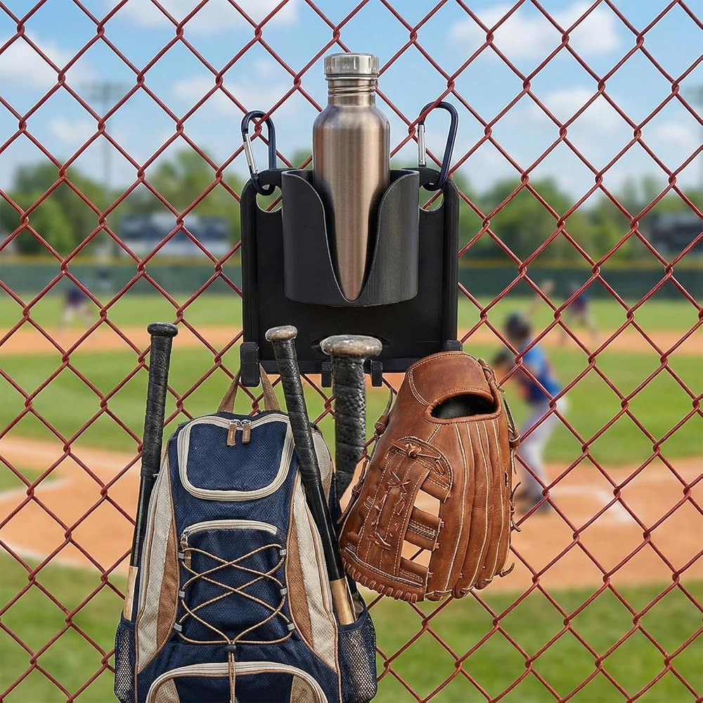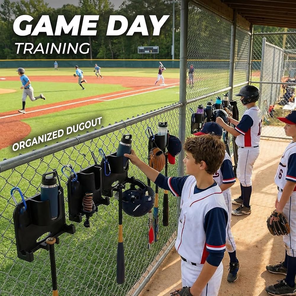 Keep your game zone professional with this baseball dugout organizer with drink holder. Designed as a heavy-duty baseball fence gear organizer, it features a sturdy carabiner system for quick, tool-free mounting. This portable softball dugout organizer serves as the ultimate bats baseball/softball dugout organizer, keeping gloves, helmets, and bats off the ground. The integrated cup holder ensures hydration is always within reach during intense plays. Whether you need a dugout organizer baseball or a dugout organizer softball solution, this rack eliminates clutter to enhance focus. Durable and practical, these dugout organizers make the perfect gift for players and coaches looking to maintain an efficient, tidy dugout all season long.