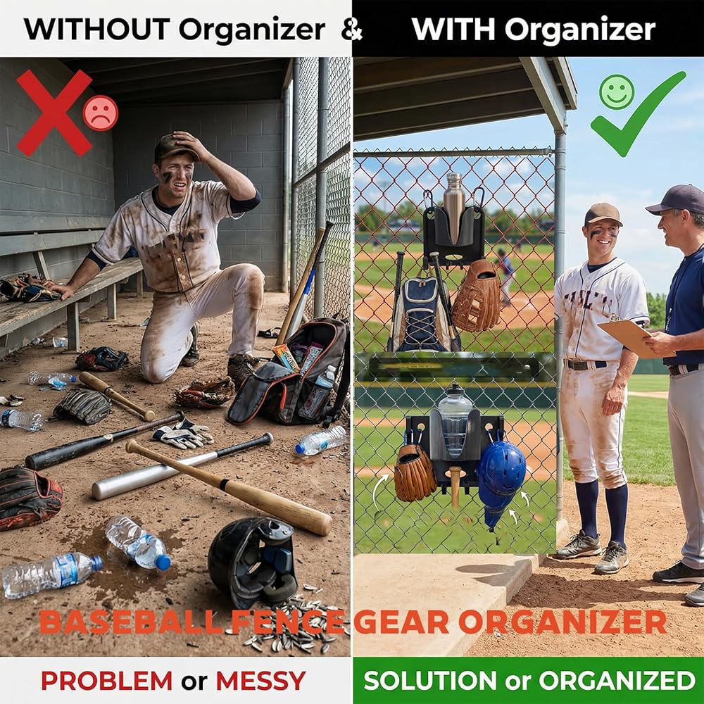 The Perfect Baseball Softball Gift: Looking for a practical and thoughtful gift for a baseball or softball enthusiast? This softball dugout organizer is the perfect choice! Baseball Fence Gear Organizer not only helps players organize their gear but also enhances their game experience. This versatile dugout organizers makes a great present for athletes or coaches, helping them enjoy a neater, more efficient game day.