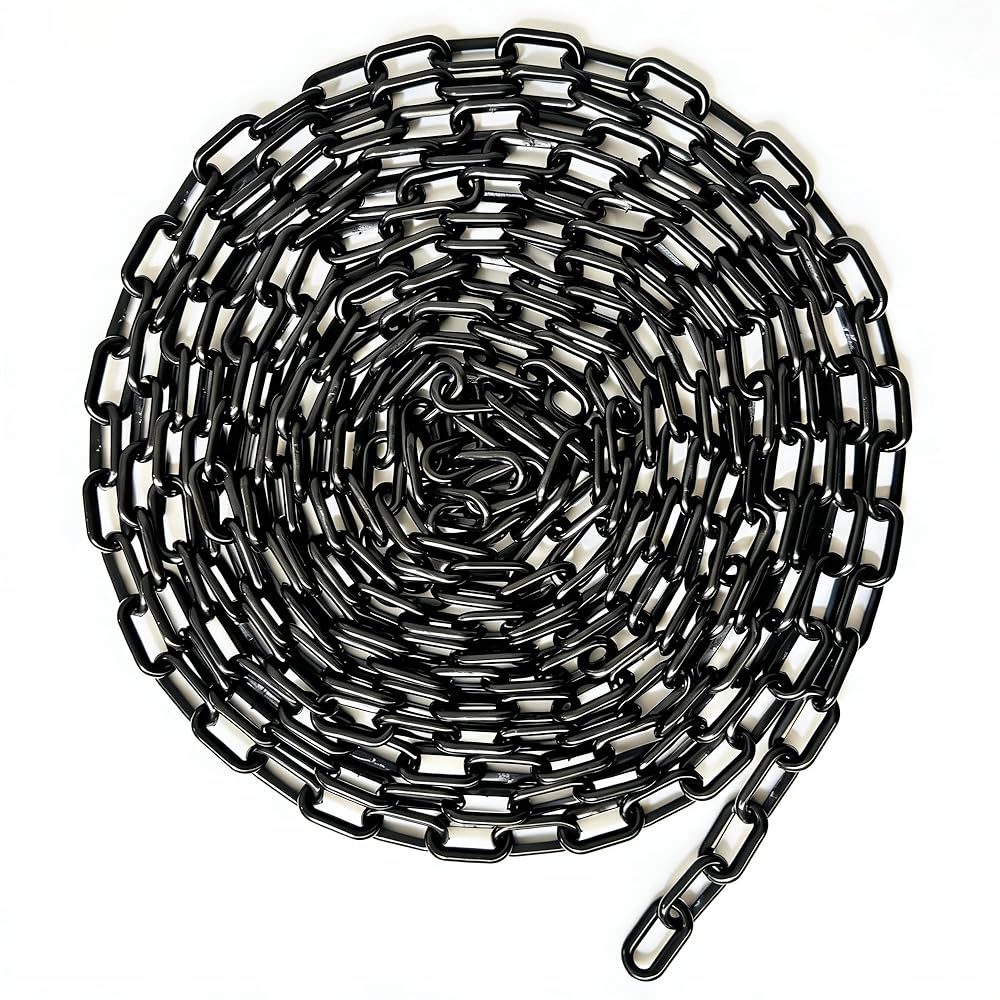 تشمل العبوة: سلسلة بلاستيكية بطول 25 قدمًا، و6 خطافات على شكل حرف S، وخطاف أحمر متصل مسبقًا بأحد الأطراف لسهولة التعرف عليها.