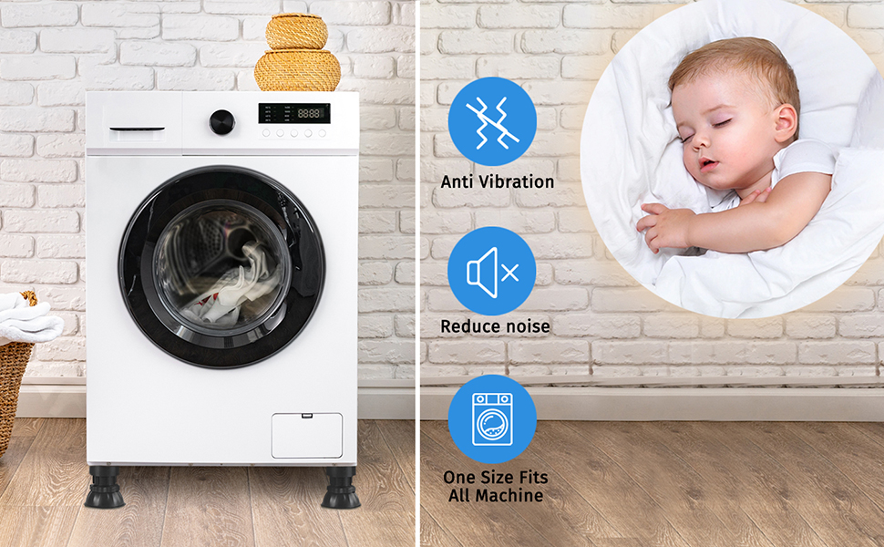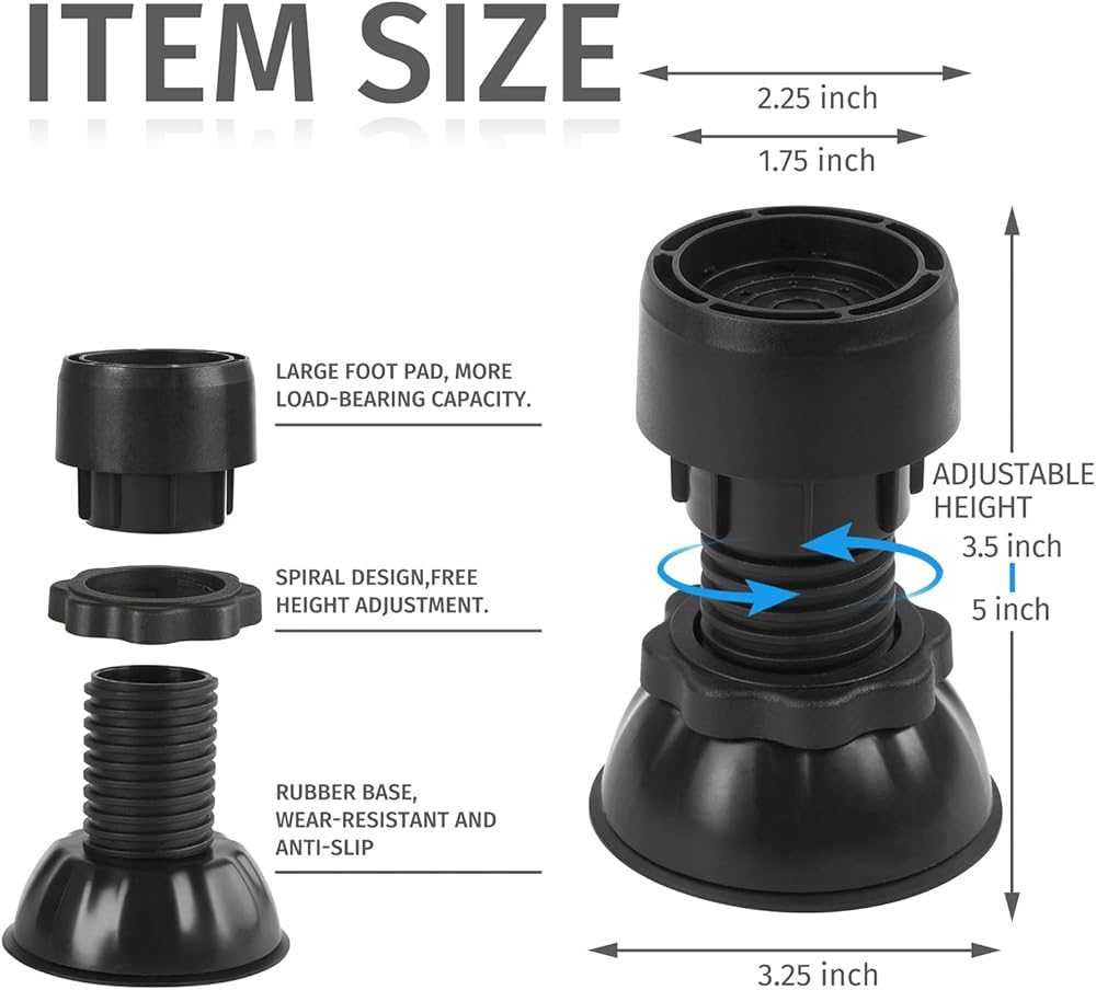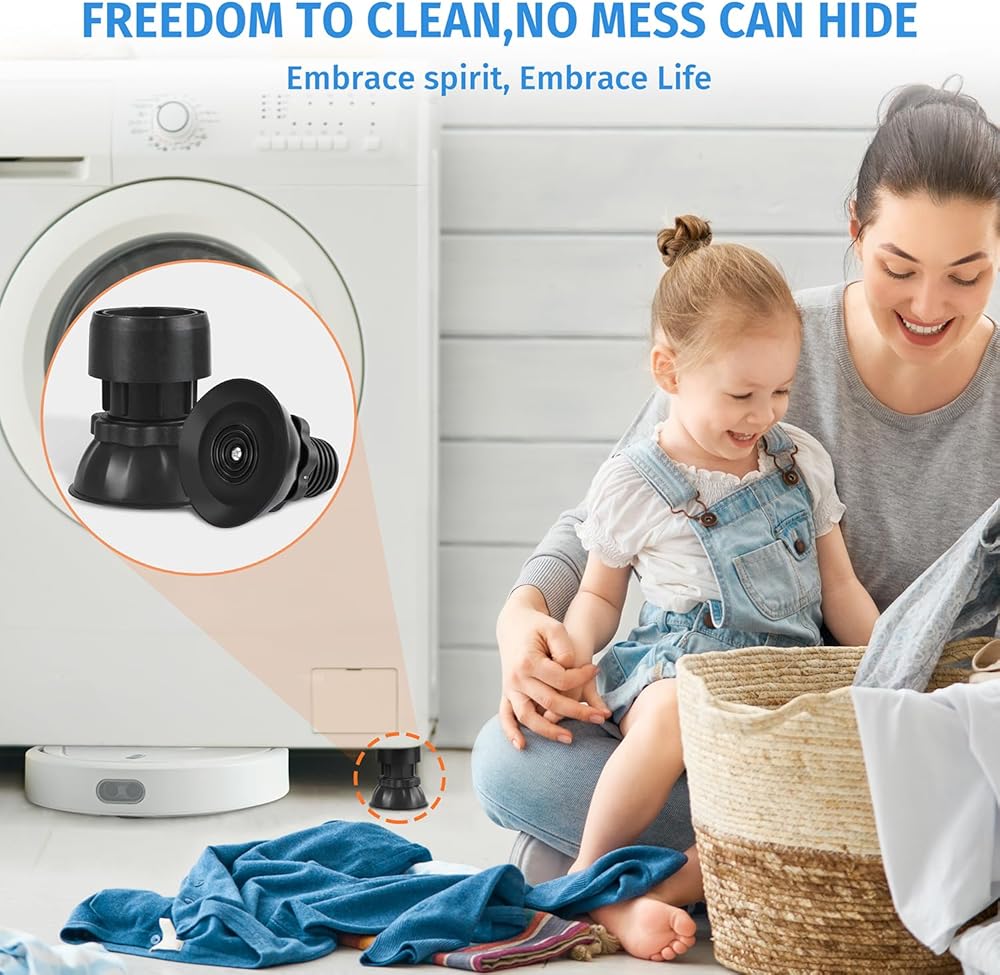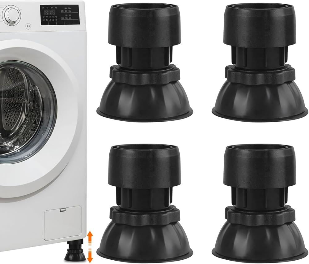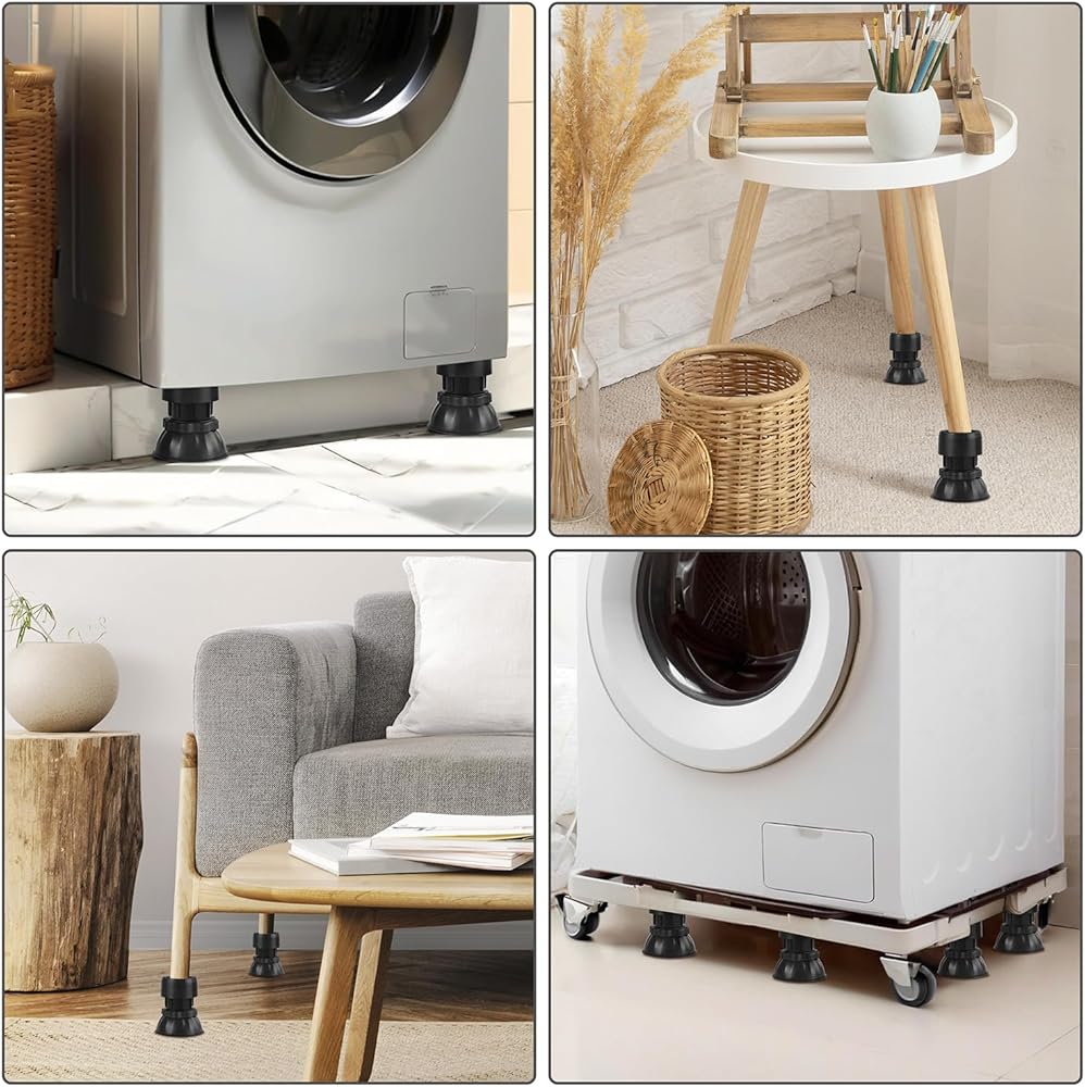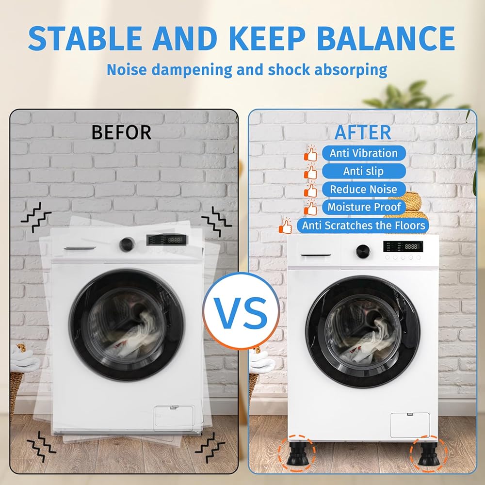 السلام للاسترخاء: مع وسادات تخميد الاهتزاز الميكانيكية القابلة للتعديل، فإنها تمتص الصدمات بشكل فعال، وتقلل من الاهتزازات، وتوفر بيئة منزلية أكثر هدوءًا وراحة. مثالية لحماية أرضياتك مع تحسين أداء غسالتك!