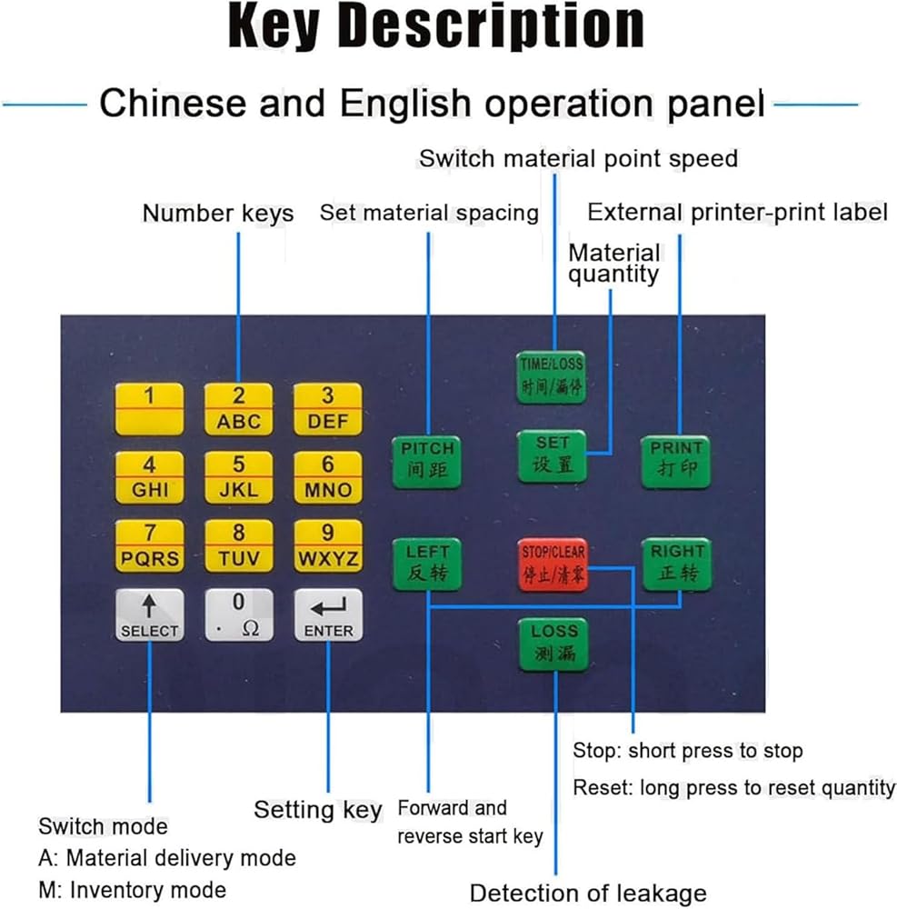 • 【LCD DIGITAL DISPLAY】: With a 3-digit LCD display screen, this SMT SMD parts counting machine is easy to observe the dispensing process and status,and the Chinese and English intelligent control panel allows you to set the count, spacing, time, forward and reverse rotation, and leakage detection, which is very convenient.