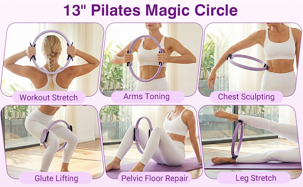 • 13-inch Pilates Ring: Features a high-quality elastic fiberglass core for durability and resistance to deformation. Soft, cushioned, sweat-absorbent foam handles provide a comfortable grip. It delivers controlled resistance to help precisely sculpt all muscle groups, effectively improve posture, and enhance balance and flexibility. An essential accessory for any Pilates set.