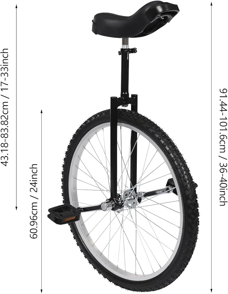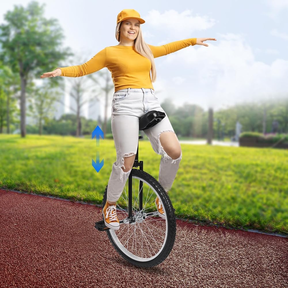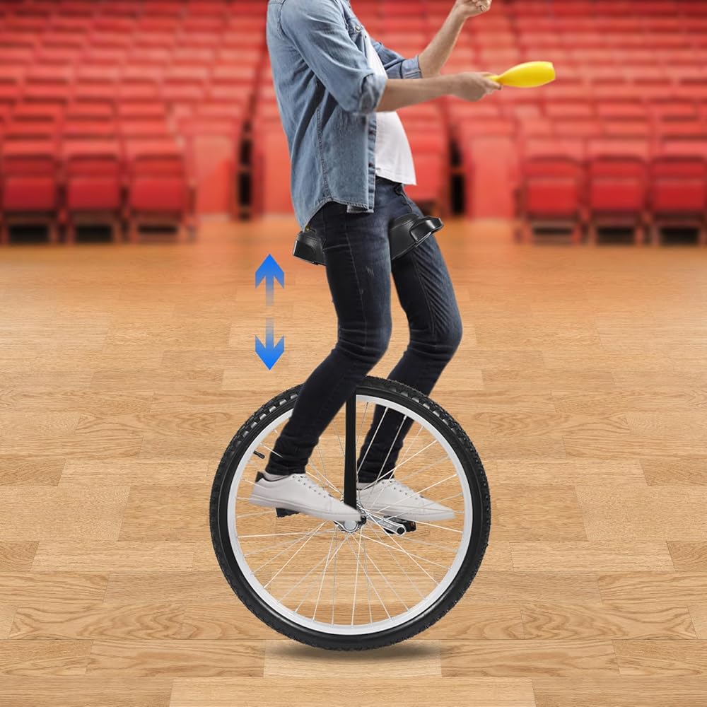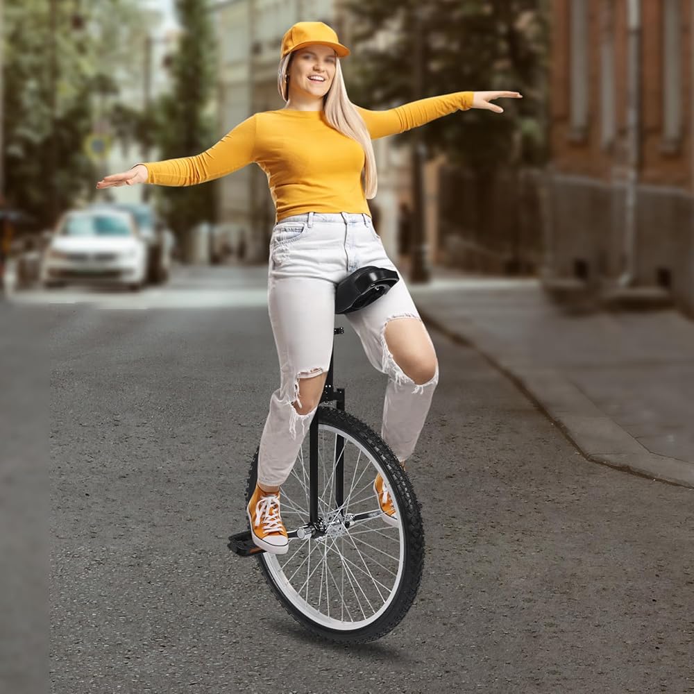 This 24-inch unicycle will provide you with a unique fitness experience, enhancing your physical fitness while improving your riding balance. The grips on the front and back of the seat and the lightweight body make it easy to carry, allowing you to maneuver through crowded city streets or on park trails, bringing you a different travel experience. It is not only a transportation tool but also a partner to show your own style and challenging spirit.