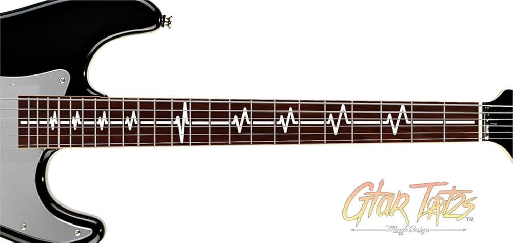 This is for Guitars without Fret dots. This will NOT cover dots. Crafted in America from GtarTat2s Made for Musicians, by Musicians! FITS BASS UP TO 24 FRETS.Quickly turn your boring old guitar into an exotic, custom work of art. Make over your old $100 guitar to look like a $1,000 custom guitar. GtarTat2s won't damage your guitar, effect your guitar sound, or hinder your guitar playing. Made of super thin material that won't get caught in your strings. Takes minutes to apply. If you can use scissors, You can install GtarTat2s. GtarTat2s stay on until you decide to pull them off.
