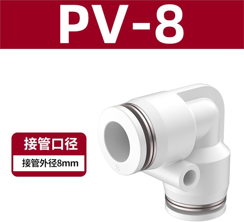 PV هوائي أنابيب الهواء مشترك موصل سريع الزاوية اليمنى 90 درجة الكوع البلاستيك PV-4/6/8/10/12 أبيض وأسود 1 قطعة (PV-8)