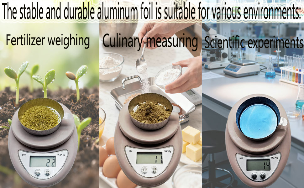 • مصنوعة من رقائق الألومنيوم عالية الجودة، أطباق الوزن هذه أكثر متانة ومقاومة للتآكل من الأطباق البلاستيكية. يمكنها تحمل درجات حرارة عالية معينة وتكون آمنة للاستخدام مع مجموعة متنوعة من المواد دون تفاعل.