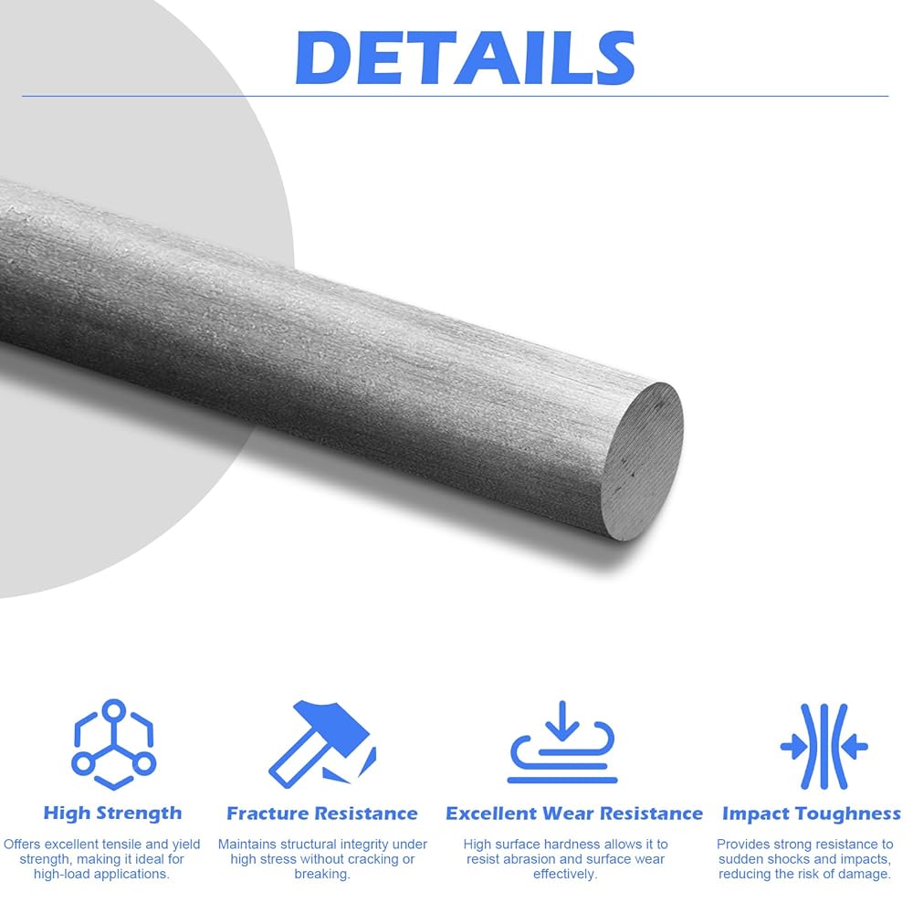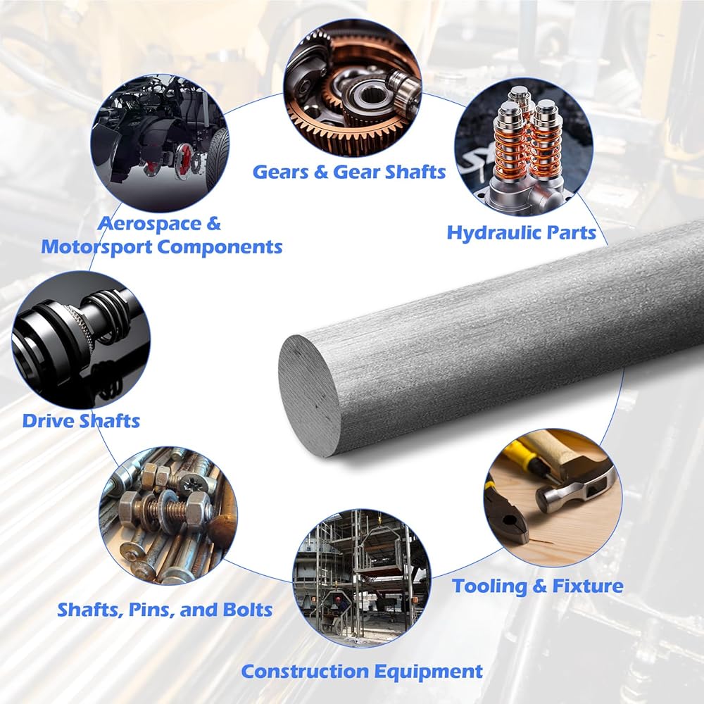 The LAJIAOZ 4140 Alloy Steel Round Bar is a high-performance industrial-grade steel rod crafted from premium 4140 Chromoly steel. Measuring 1.5 inches in diameter and 36 inches in length, this round bar features a cold finished surface for improved dimensional precision and an annealed core for superior ductility and machinability. Engineered for high-stress, heavy-duty environments, 4140 steel offers outstanding strength, impact resistance, abrasion resistance, and fatigue durability. This makes it a popular choice for a wide range of mechanical parts including gears, shafts, spindles, valves, sprockets, and collars. Suitable for machining, welding (with post-weld heat treatment if hardened), and heat treatment, this steel bar is an essential material for professionals in aerospace, automotive, oil & gas, defense, and agricultural industries. Whether you're fabricating custom components or replacing critical parts, this alloy steel round bar delivers reliable performance that meets ASTM A108 standards.